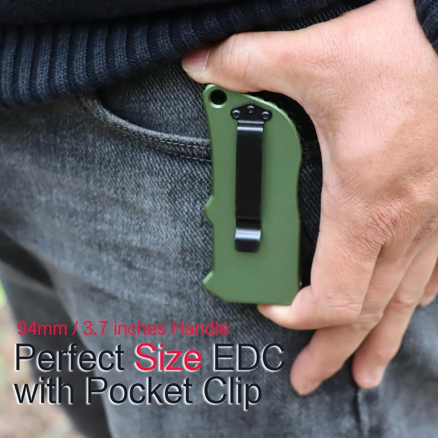 【 Lightweight and Portable 】 Our heavy-duty utility knife features a durable aluminum alloy body and five additional SK5 carbon steel blades. Our small utility knife is lightweight, weighing only 0.22 pounds, with dimensions of 3.62 inches x 1.54 inches. It comes with a pocket clip and can be clipped into your pocket or backpack.