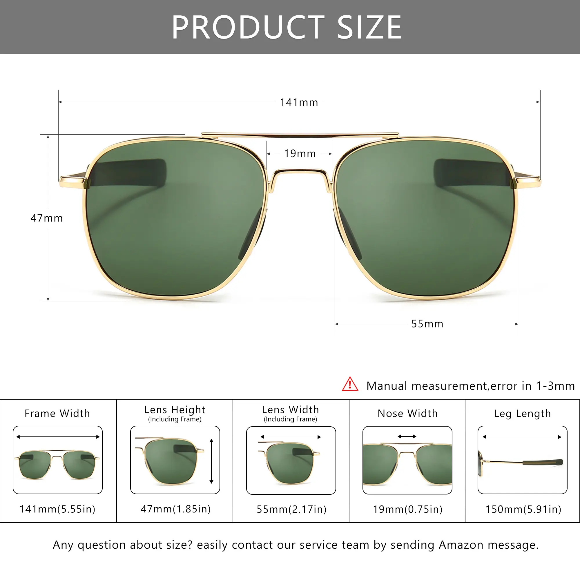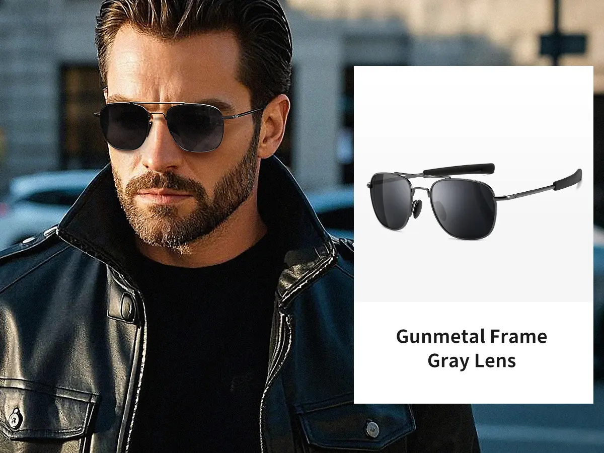 SUNGAIT Polarized Military Square Aviator Sunglasses for Men Women with Bayonet Temple