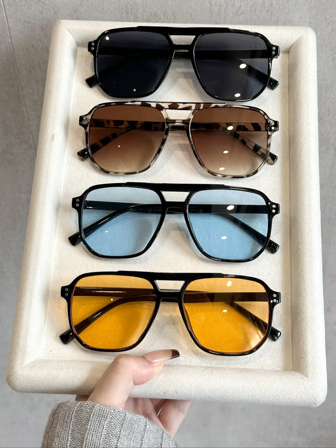 The yellow tinted shades are my fave! Check out my page to see how I styled each pair. They are lightweight and the frames and colors are AMAZING 🤩 Such a good price for the quality, style and durability.