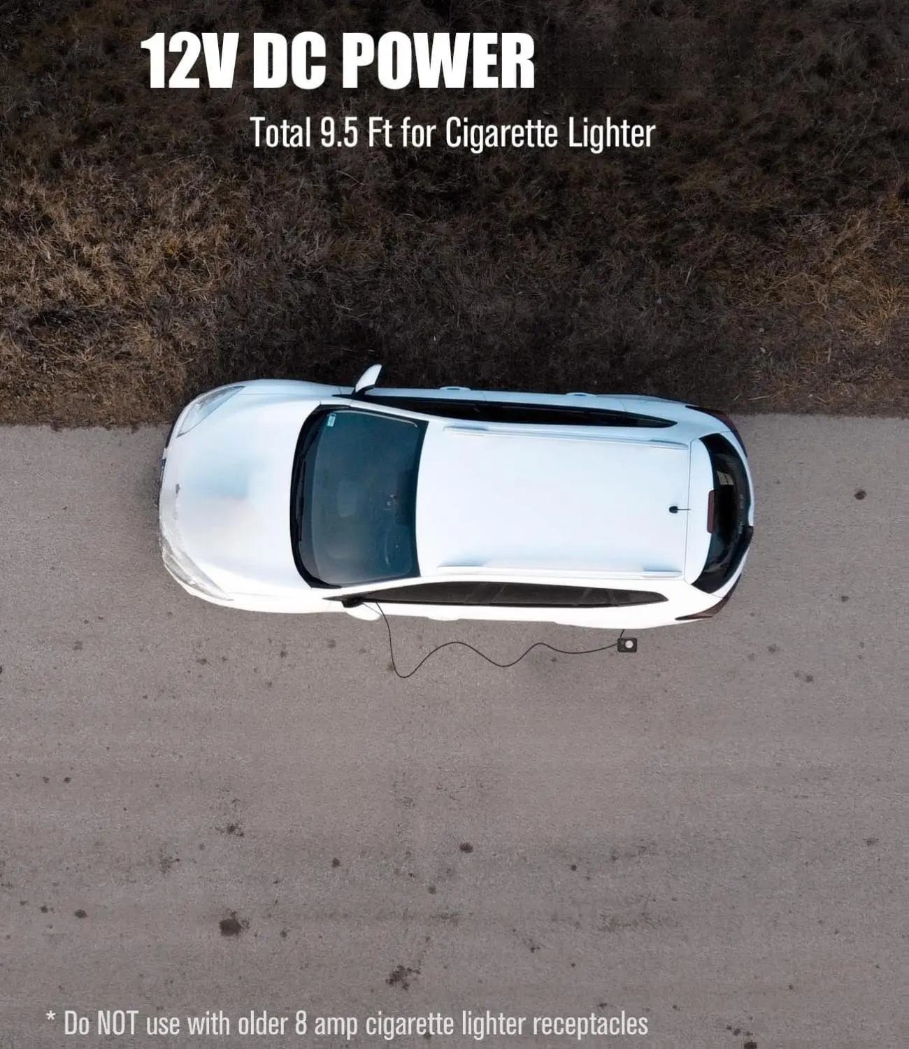 With a 9.2 Ft 12V power cord and 0.3 Ft air hose, it reaches all four standard car tires. The quick-connect air hose design allows easy connection and pressure checking. Simply push down the lever and pull up to lock.