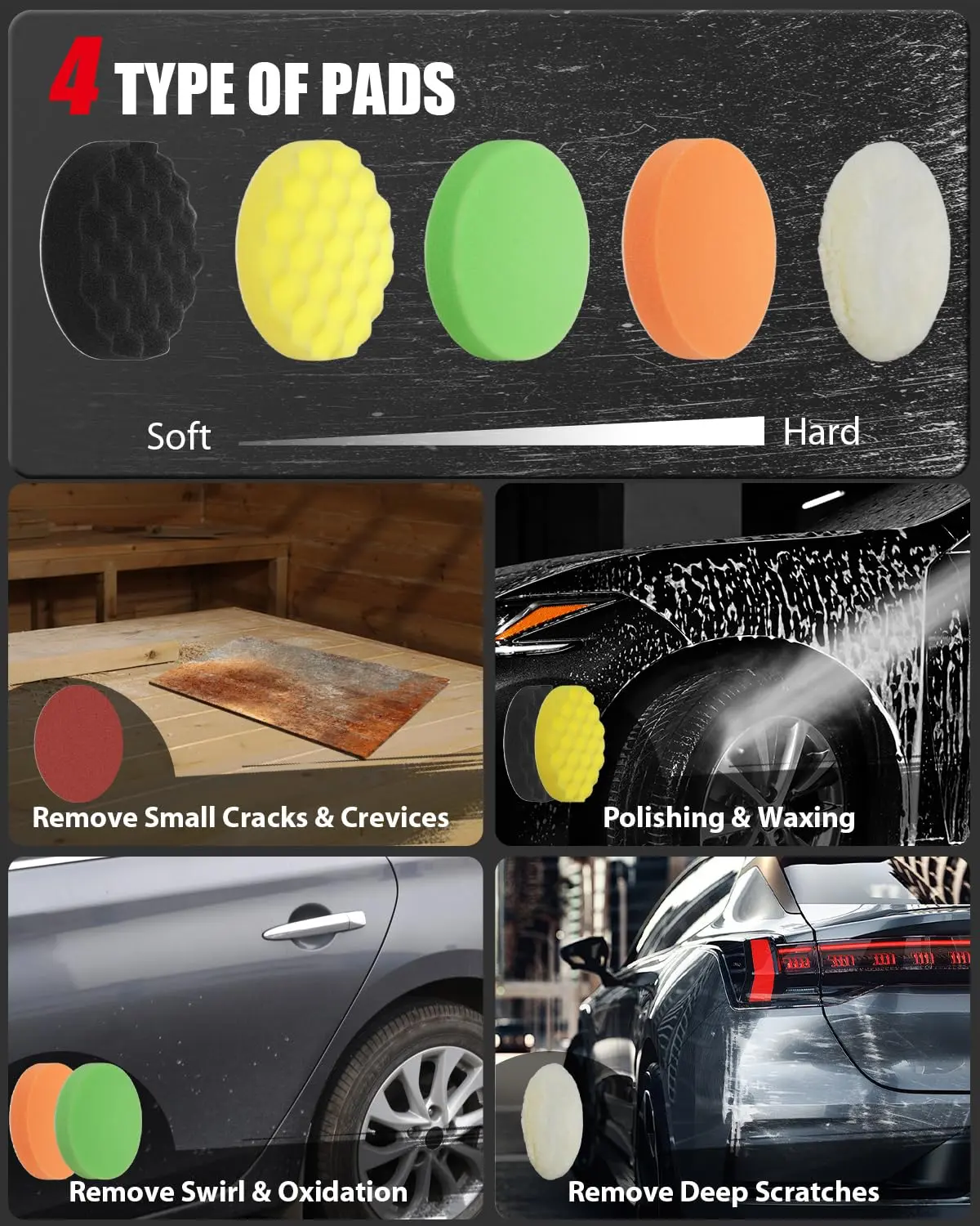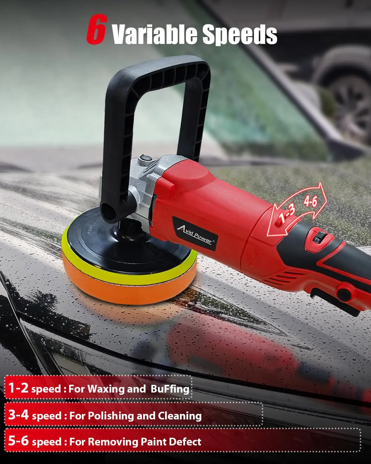 Enjoy 6 adjustable speed dials for versatile use. Change speeds from 1600-3500 RPM based on materials. Use low speed for waxing, medium for polishing, and high for removing defects. Achieve professional results effortlessly with this adjustable speed control.