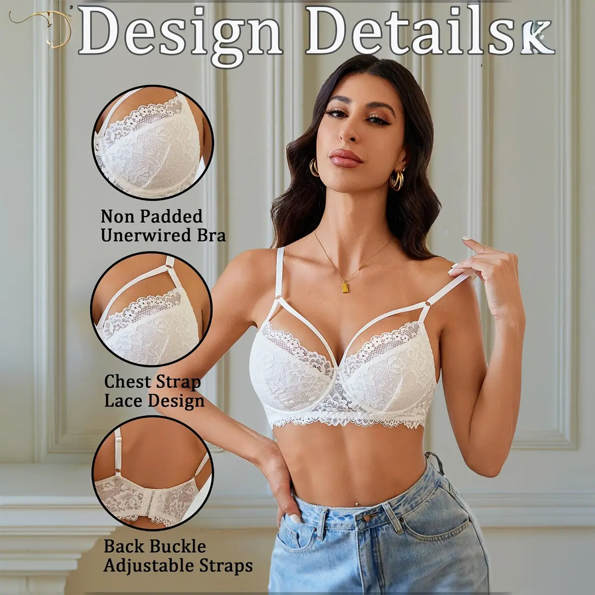 ·【Lace & Crossband】This sexy bra features soft lace that offers a delicate feel. It is designed with a front three-strap crossover opening, adding a unique and stylish touch.