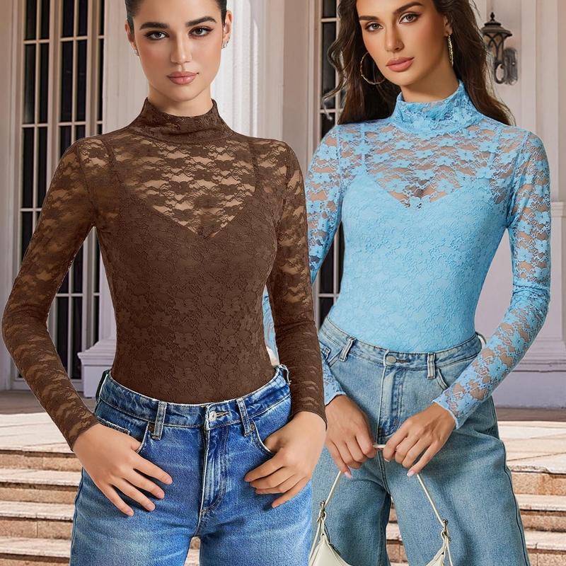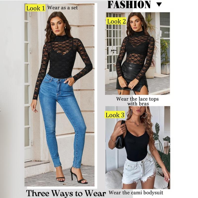 ·【Materiel】Mesh tops are made with high quality lace and stretch material, ensuring durability and comfort. Bodysuits for women is made of high-stretch, and breathable fabric. Lightweight and breathable material which will bring you soft touch feeling.