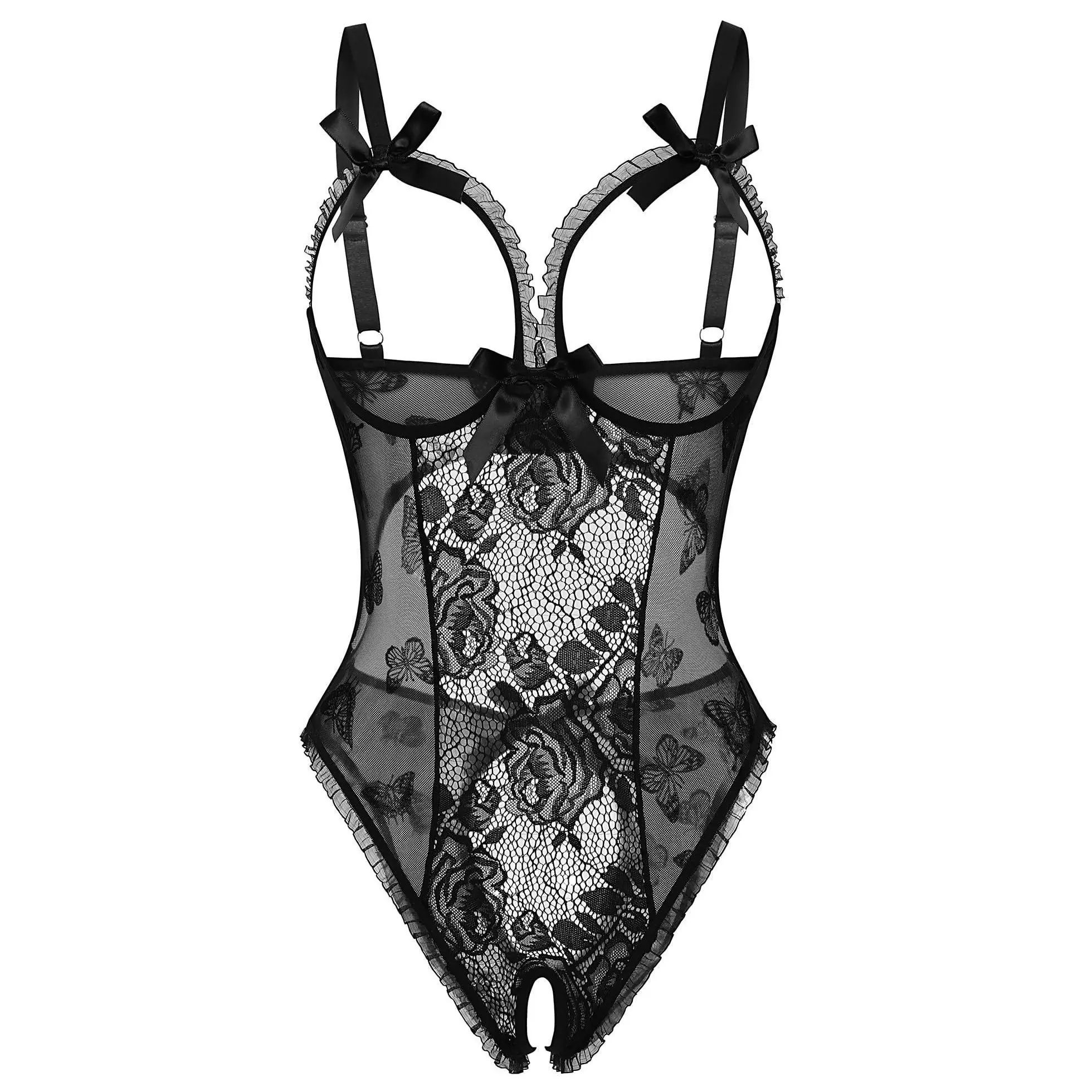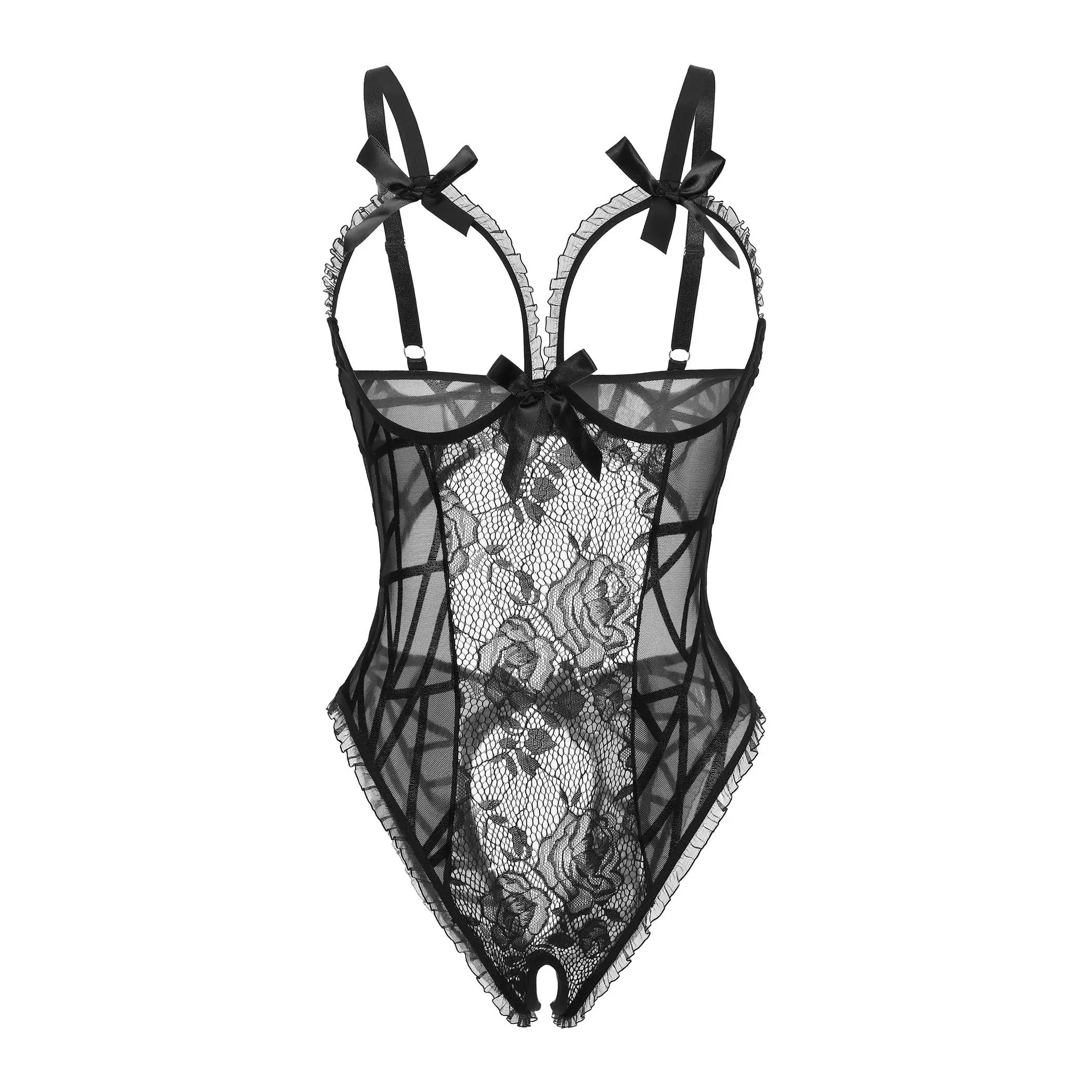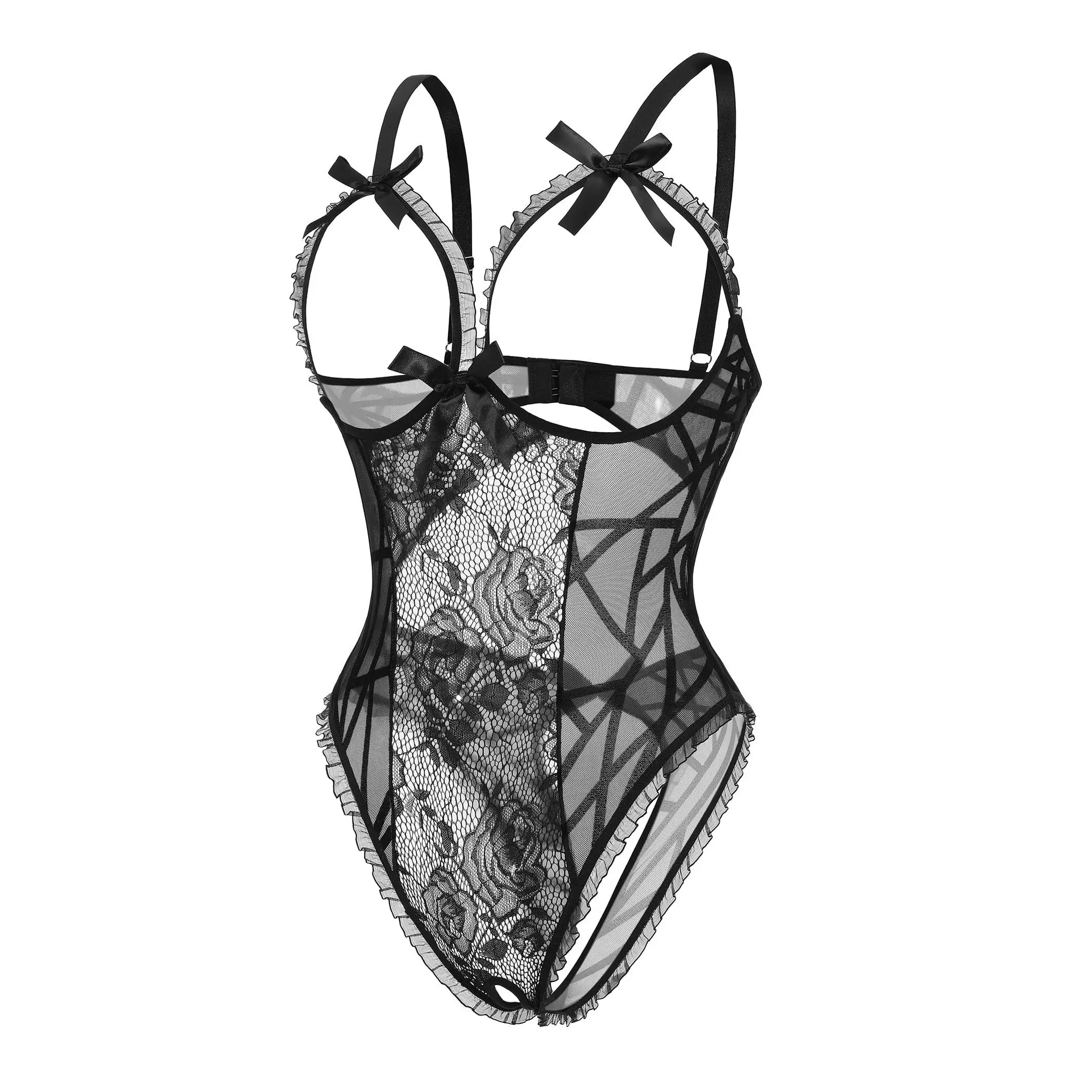 ·Features: This lingerie for women featuring cutout bra with ruffle trim and bow decor, hook and eye closure, delicate floral lace and mesh panel , adjustable shoulder strap help you get the best fit.