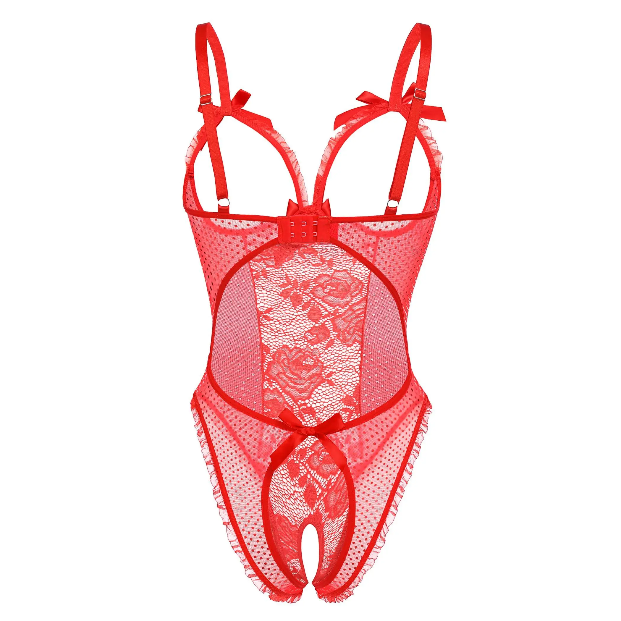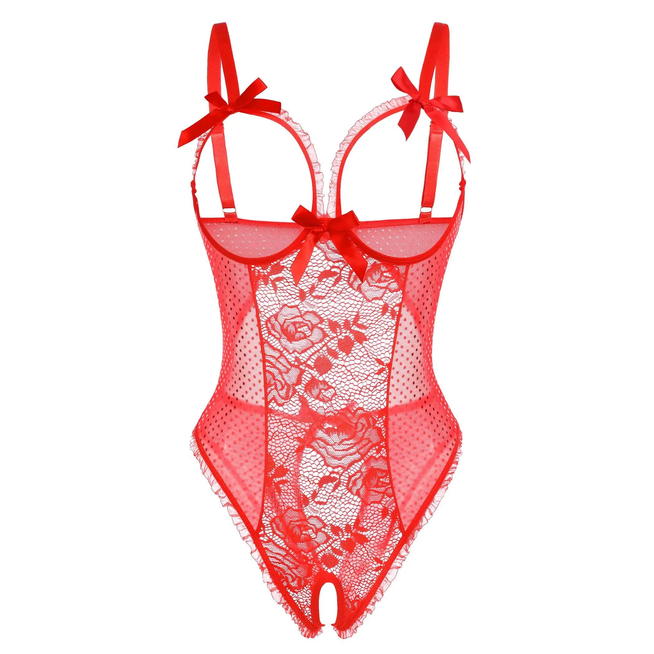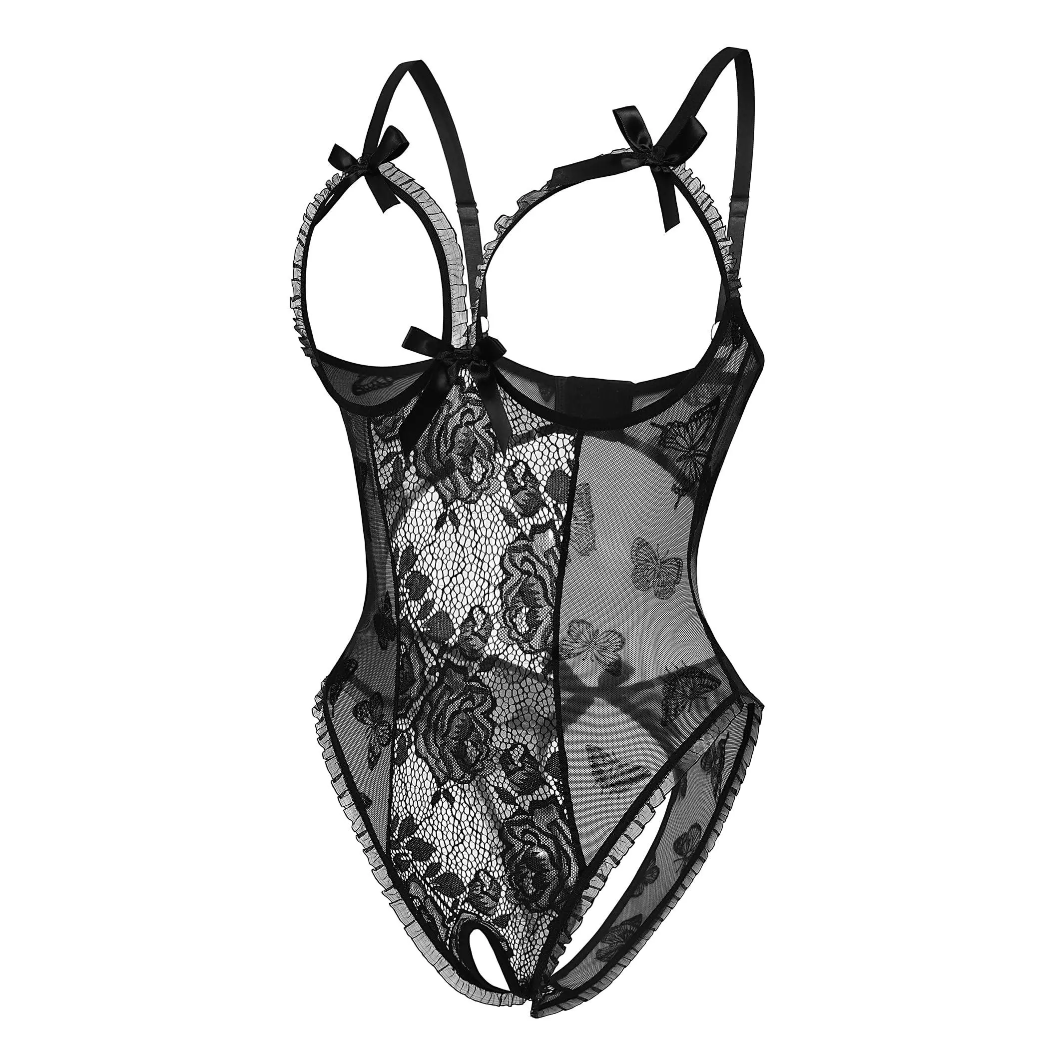 ·Features: This lingerie for women featuring cutout bra with ruffle trim and bow decor, hook and eye closure, delicate floral lace and mesh panel , adjustable shoulder strap help you get the best fit.