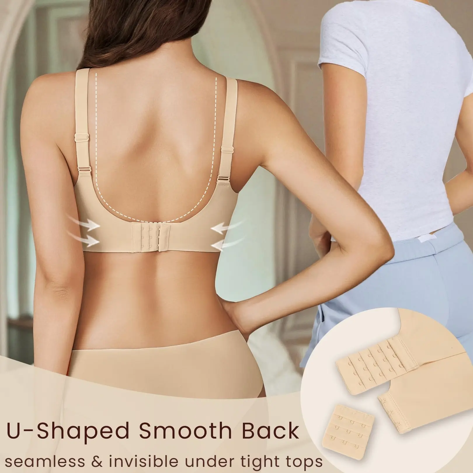 ·【Adjustable Shoulder Straps】Our no underwire bralette has adjustable, wide, non-slip straps and an extension buckle with 4 rows of hook-and-eye closures. They ensure comfort and stability, preventing sagging or riding up. The U-back design and wide side wings help hide the underarm bulge and back fat, providing the support you need and the comfort you deserve.