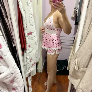 Features a delicate lace accent for a touch of elegance. The adjustable spaghetti straps offer a customizable fit. The elastic waistband ensures a comfortable and relaxed fit. The gentle and airy fabric provides breathable wear.