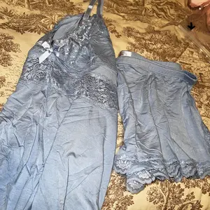 Sophisticated sleepwear ensemble for lounging day or night. Lace-detailed short pajama set includes matching camisole top and lace-trimmed summer shorts. Relaxed yet refined sleepwear for daily routine.