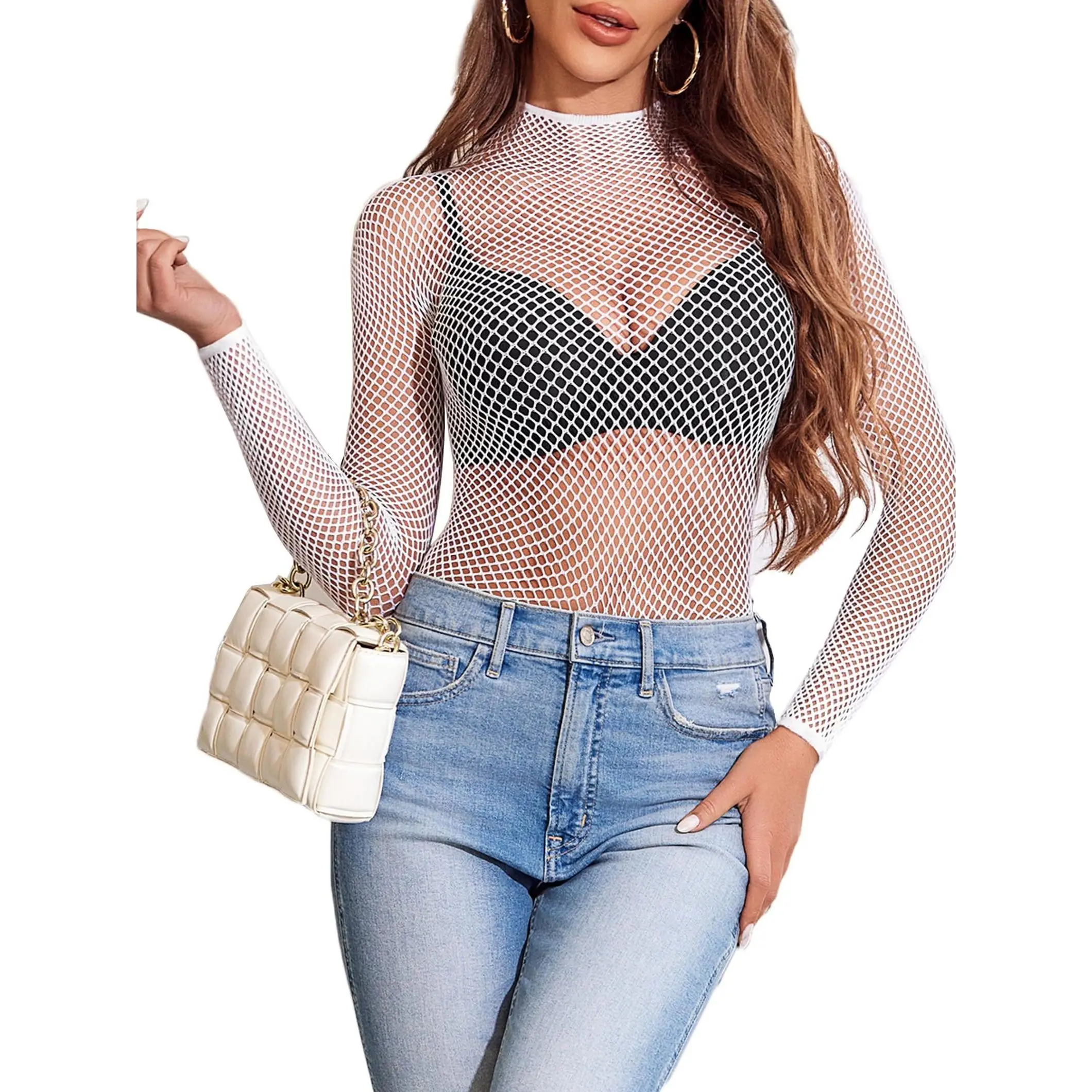 ·Seductive Design Features: High neck long sleeve fishnet shirt with full-body see-through lace detailing creates a slimming silhouette. Reinforced stitching ensures durability, and the hollow-out crochet pattern enhances allure with subtle coverage.