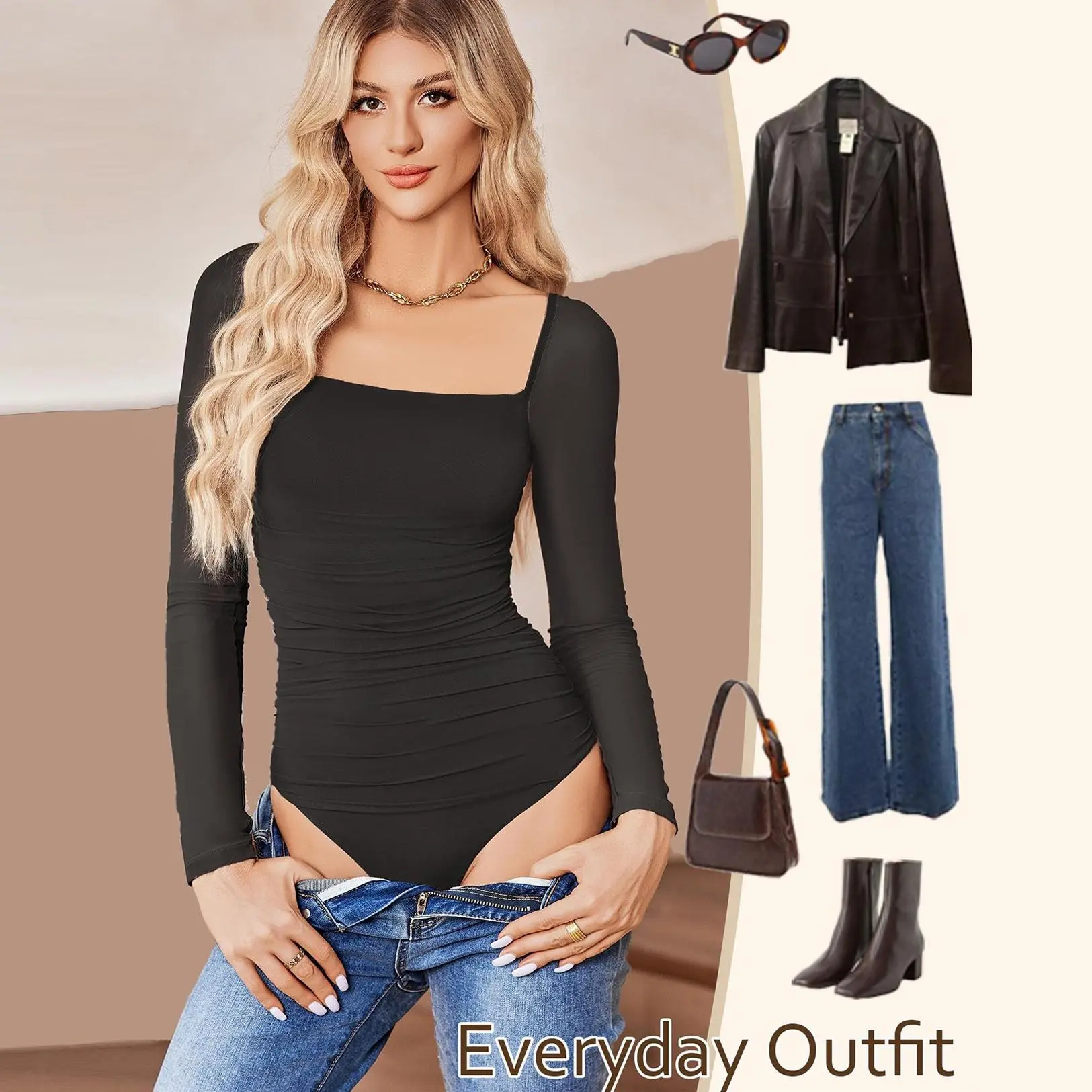 ·Matching: This long sleeve bodysuit complements practically anything, matching with jacket, shorts, jeans, leggings, cargo pants or cardigan.Best laying for spring, fall and winter.Perfect for daily casual wear or dress it up!