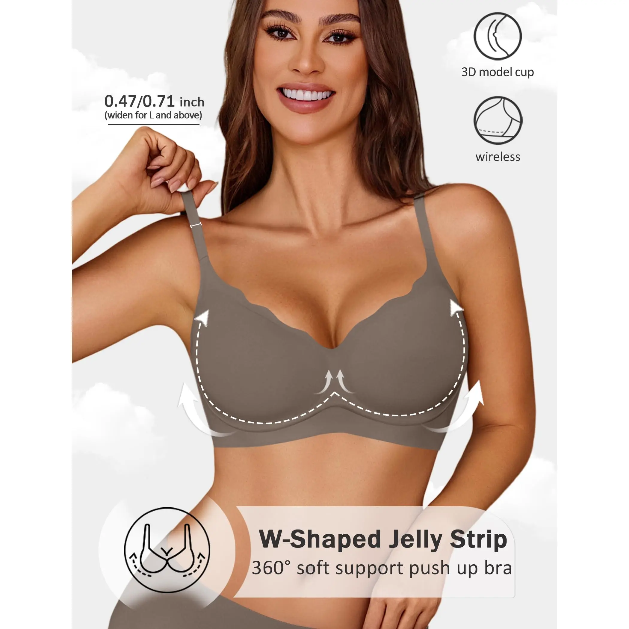 ·【Supportive Bras with Jelly Strip】Women's supportive bras featuring "W-shaped" jelly strip and innovative 3D support technology,which provides 360° support for your breasts.Bras for women with non-removable padding guaranteeing all-day comfort.