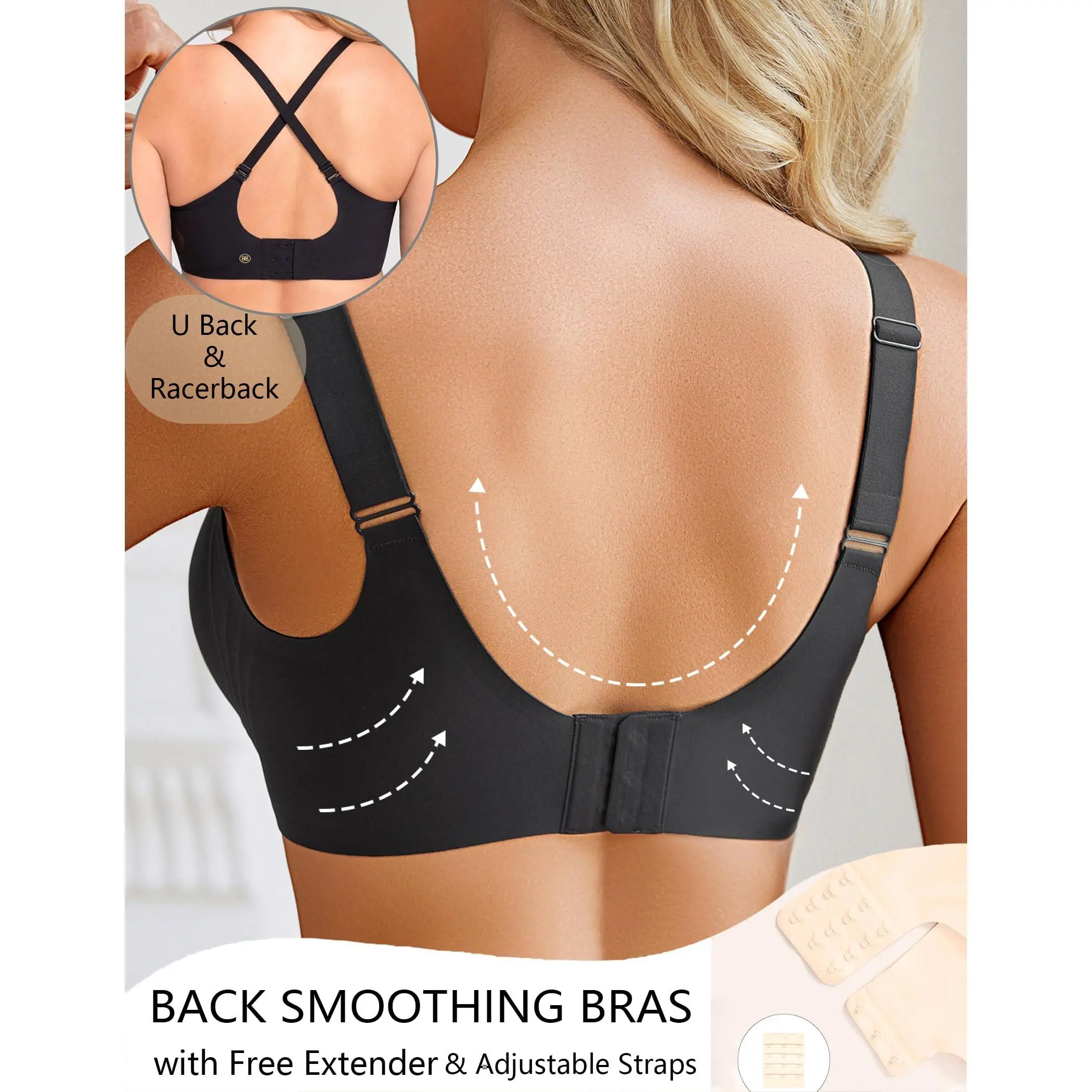 ·CUSTOMIZABLE FIT & EASY CARE: Features adjustable shoulder straps, 4 rows of 3 back hooks, and a FREE bra extender. Semi-fixed 3D contour cups with removable padding prevent shifting. When you don't want the pads, you just need to tear the fixed part to take it out to enjoy the freedom. Ideal as a daily bra, sleep bra, yoga bra, sport bra or workout bra. Machine washable; we recommend washing before first wear.