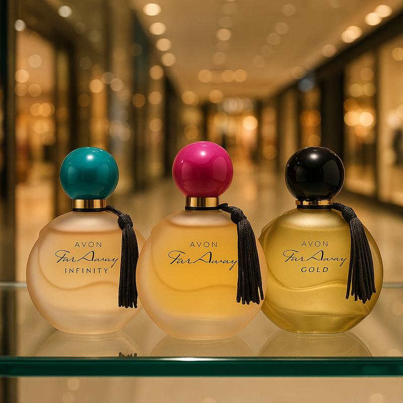 Discover the AVON Far Away Original, Gold & Infinity EDP Set