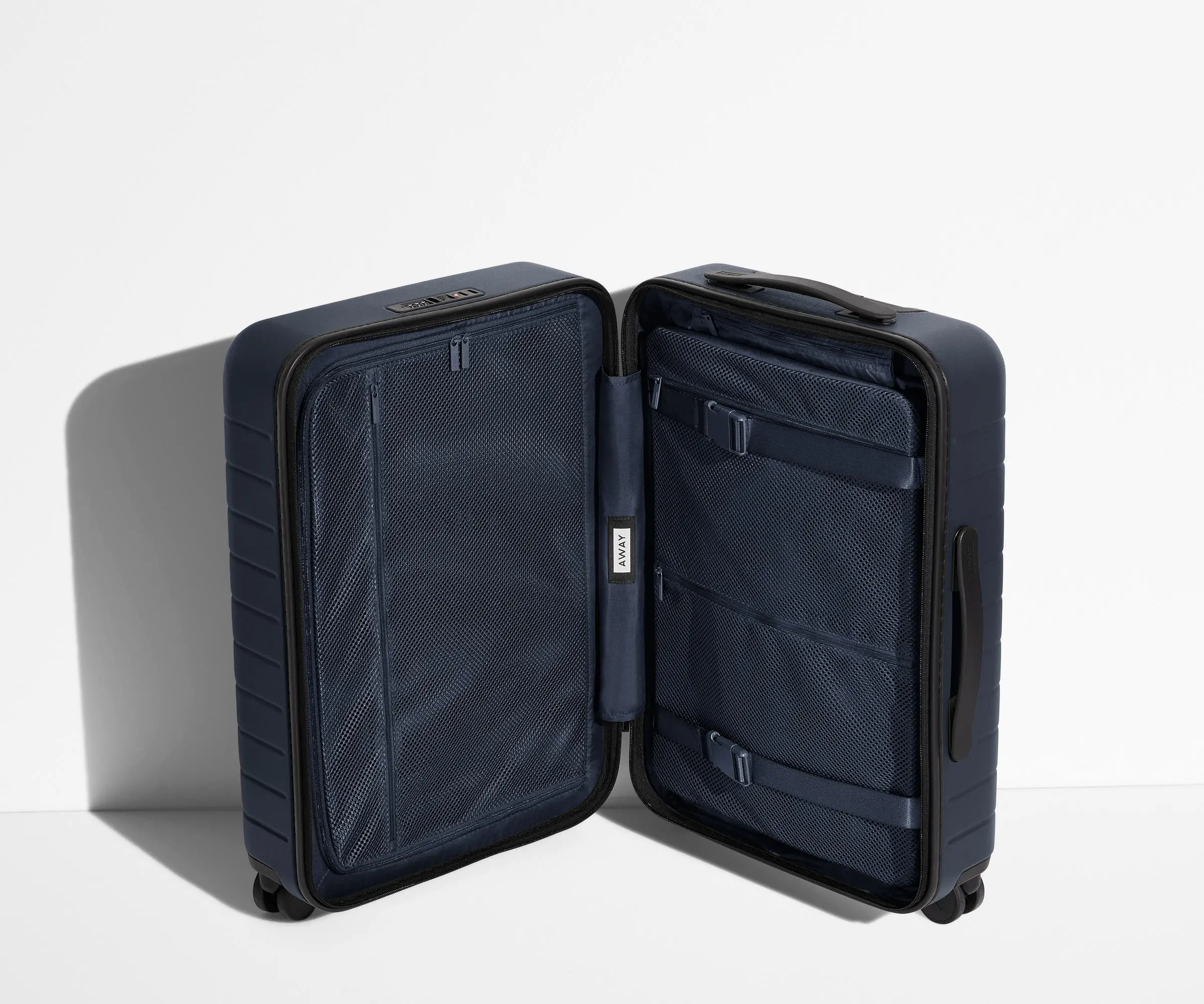 I love the look of the Away luggage but decided to return it for 2 reasons: —handle seems flimsy when I have it all the way extended so I can attached my carryon —I wish there was a separate zipper for the extended option. Without it, I didn't care for the ""accordion"" movement.