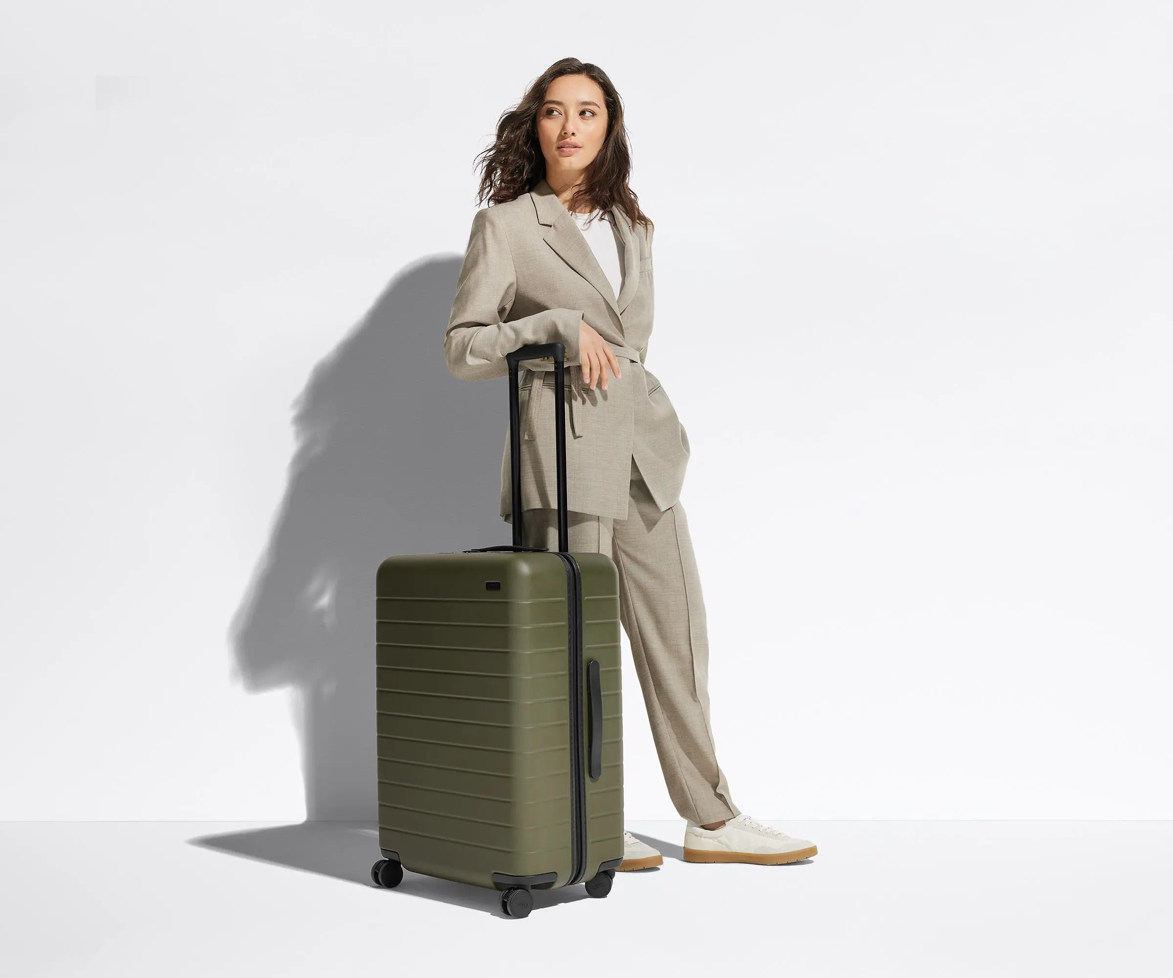 We have purchased many Away bags and suitcases. The Medium is the newest in our collection. We rarely travel with a check bag, but lately have needed to. This one is perfect. Wheels easily. Transported my mother- in-law's china home in it with no damage.