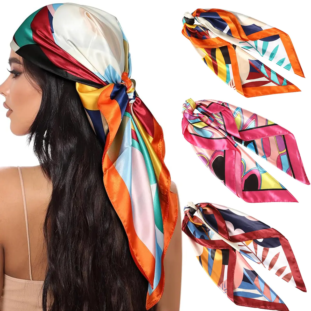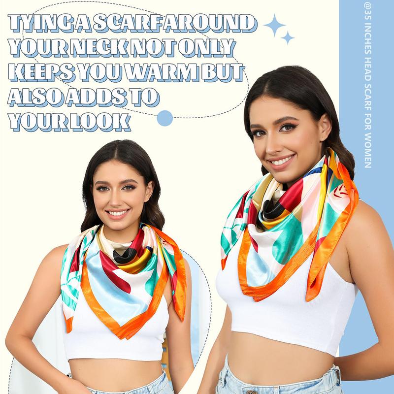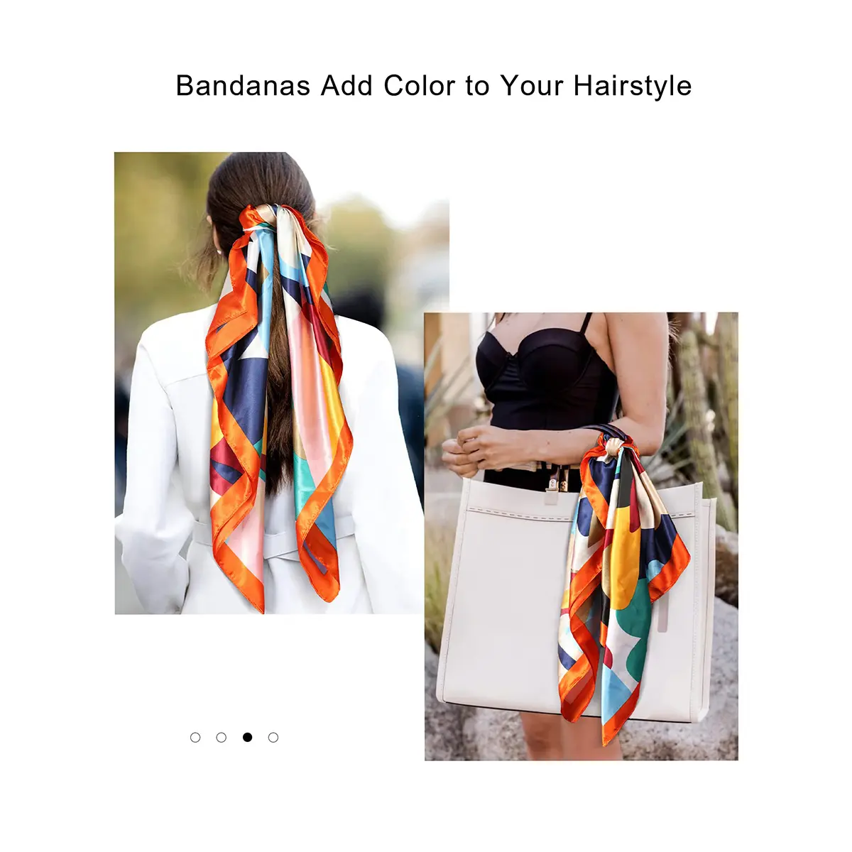 【PERFECT FASHION ACCESSORY】Satin head scarf is decorated with colorful prints on a satin background for vibrant colors. square hair scarf can be used as a headband, hair wrap, shawl, scarf, turban.Square scarves can be worn around the head, neck, waist, wrist, decorate handbags and hats, etc. Satin square scarves are the perfect accent to any outfit.