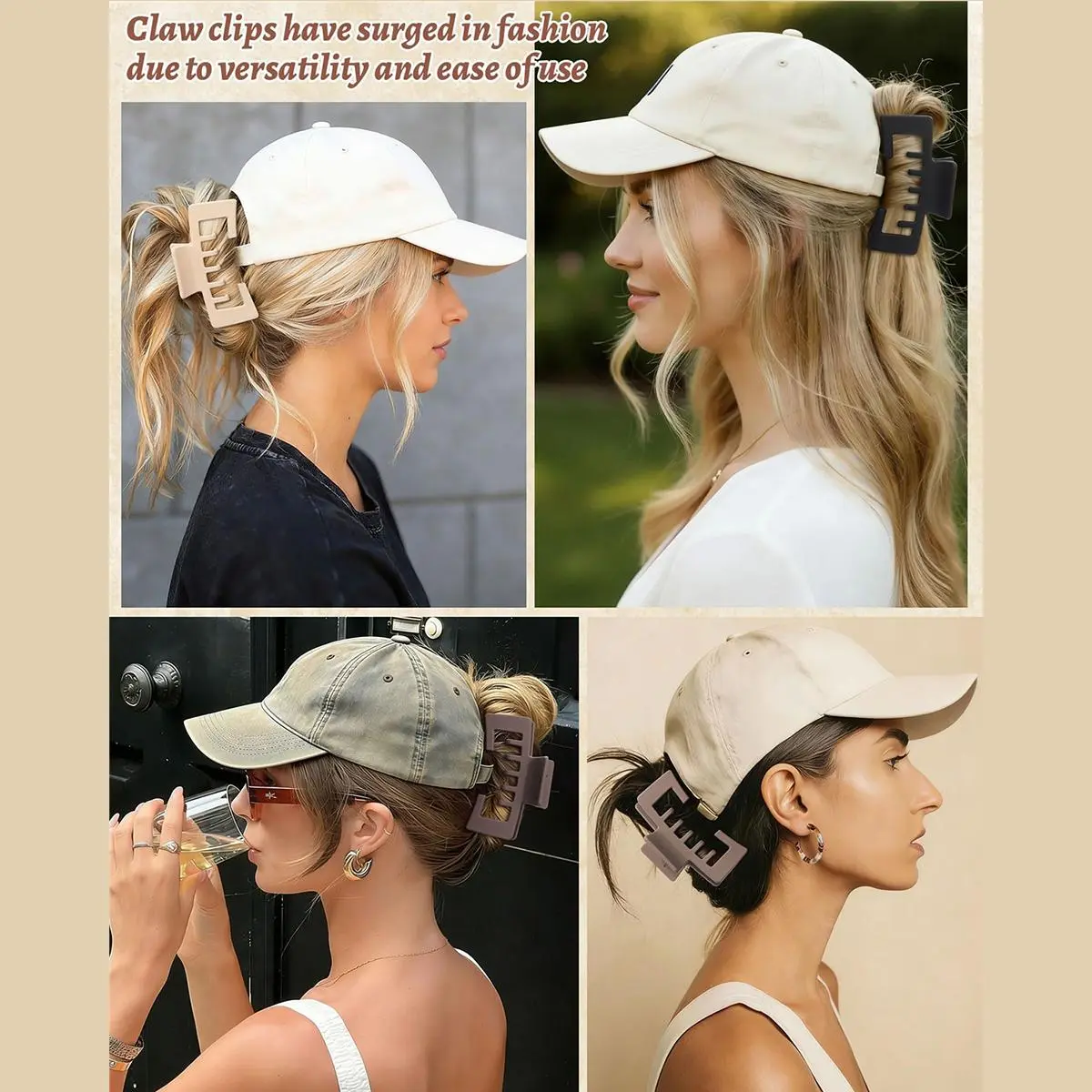 【Versatile Hat Claw Clip Styling】Perfect hat claw clip for baseball caps, trucker hats, sun hats or beach hats. Ideal for high ponytail, messy bun or half-up styles – the claw clip with hat for daily chic looks. It's an indispensable hair accessory in your bag.