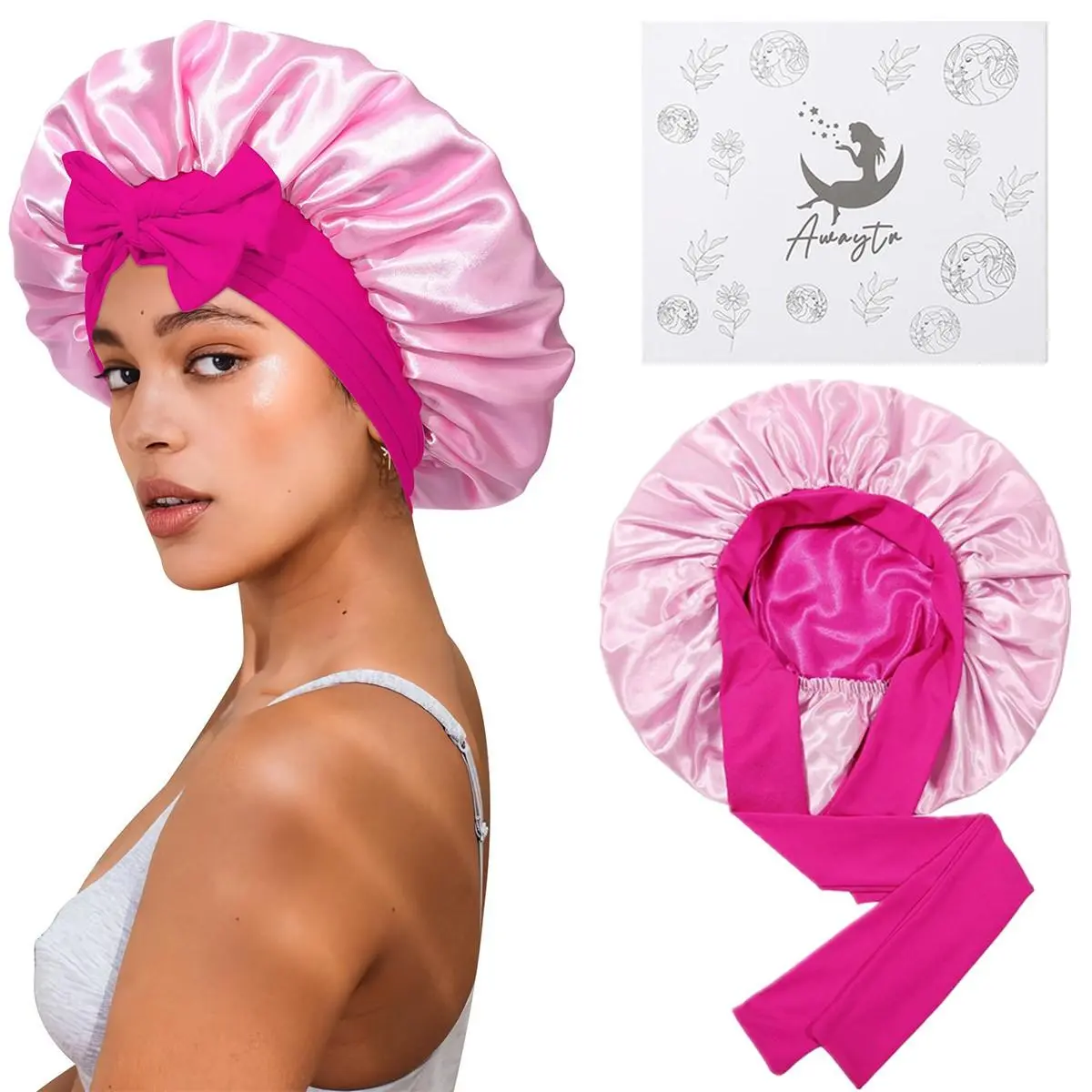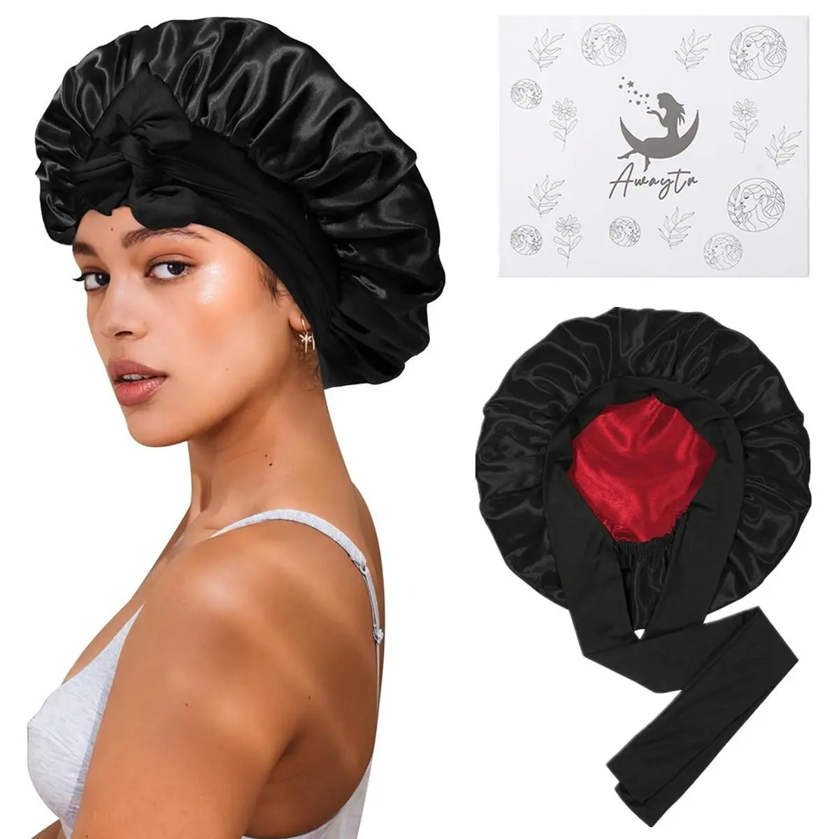 【Reversible Satin Bonnet for Sleeping Curly Hair】: The reversible Satin bonnet for sleeping women can be worn in both positive and negative colors, which is both practical and beautiful, suitable for women and men of most ages. Each Bonnet comes in a beautiful gift box, which is perfect for giving to your wife, mother and friends.