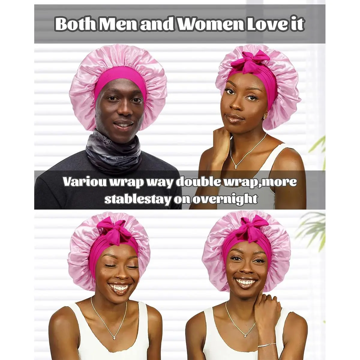 【Stay On Head All Night To Protect Your Hair】:Satin night cap can effectively protect hair to the maximum extent, help lock hair moisture, prevent dryness, frizz, split ends. Stays put all night long, and leaves hair softer, smoother, shinier.