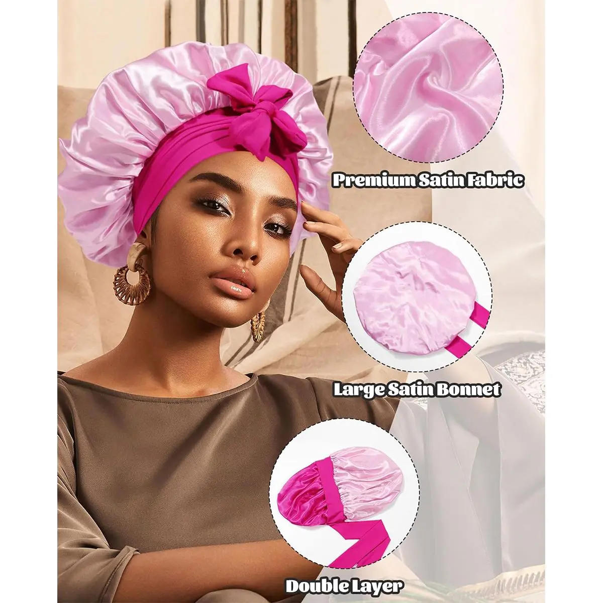 【Premium Satin Reusable Double-Layer Sleep Cap】:Satin cap is made of high-quality, lightweight 100% polyester fabric, soft and breathable. Double-layer nightcap, can be worn on both sides, double-layer hair protection.