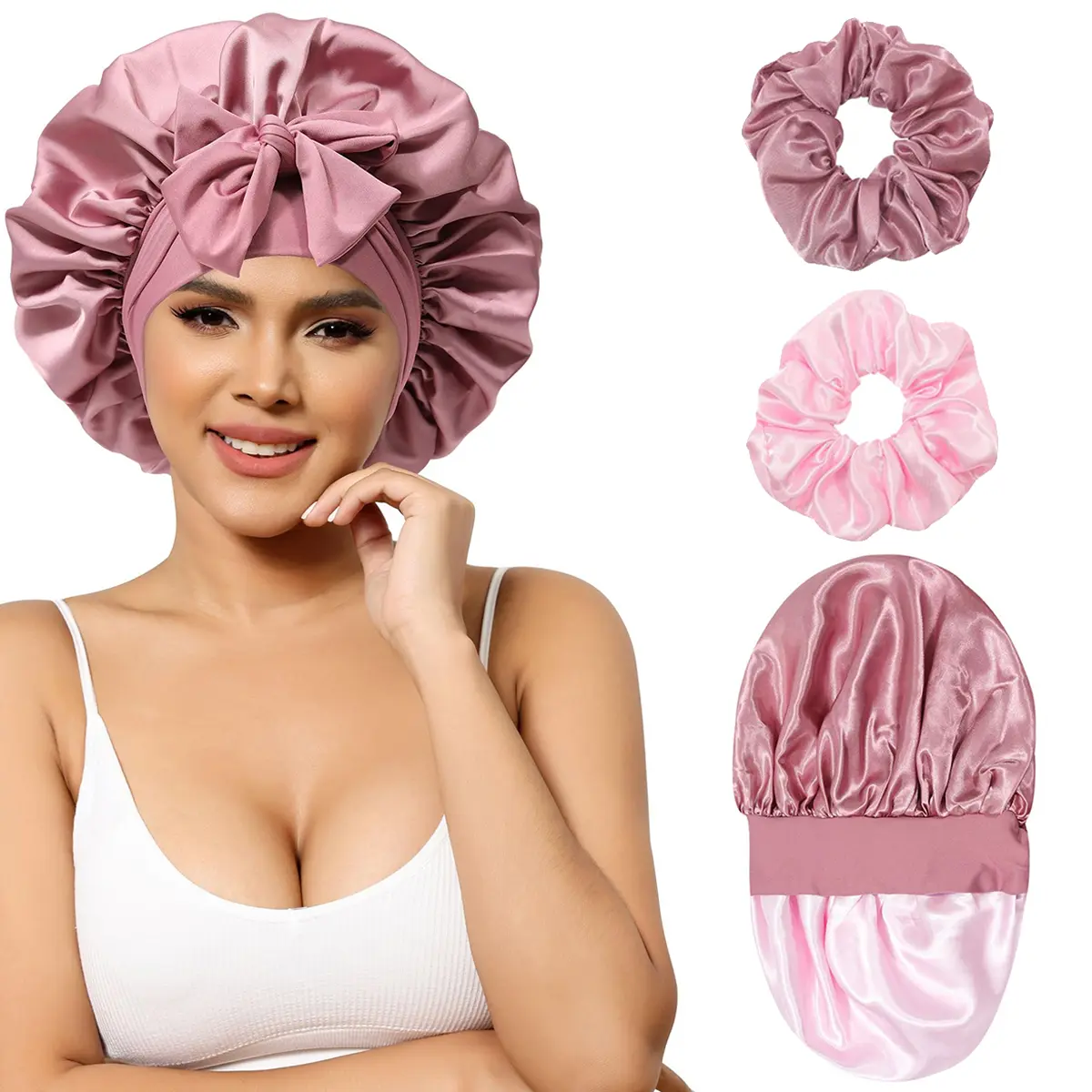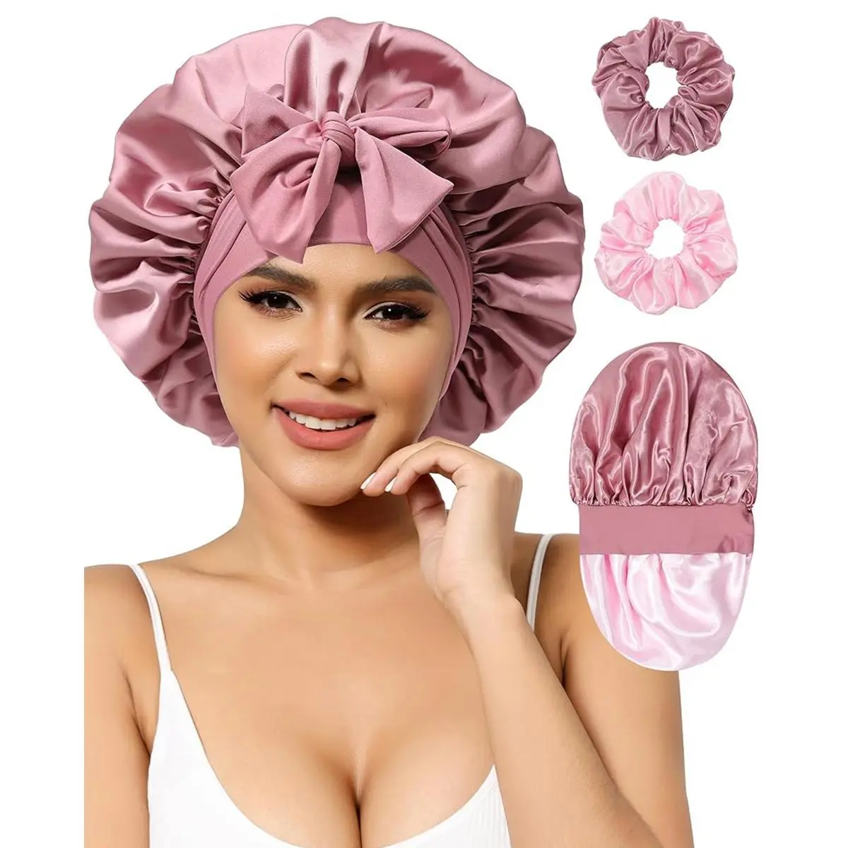 【Package Details and Washing Instructions】You will receive 1 piece satin hair bonnet and 2 pieces of hair scrunchies. Satin hats can be hand washed in cold water and mild soap, lay flat or hang to dry. When you receive the shower cap, please wash it in cold water before wearing it so that the color will not fade.