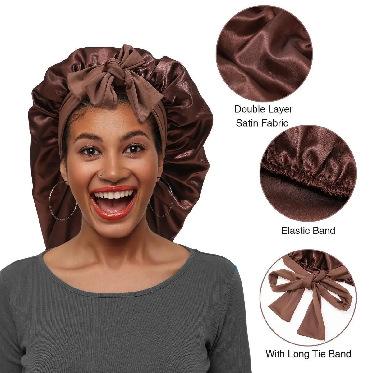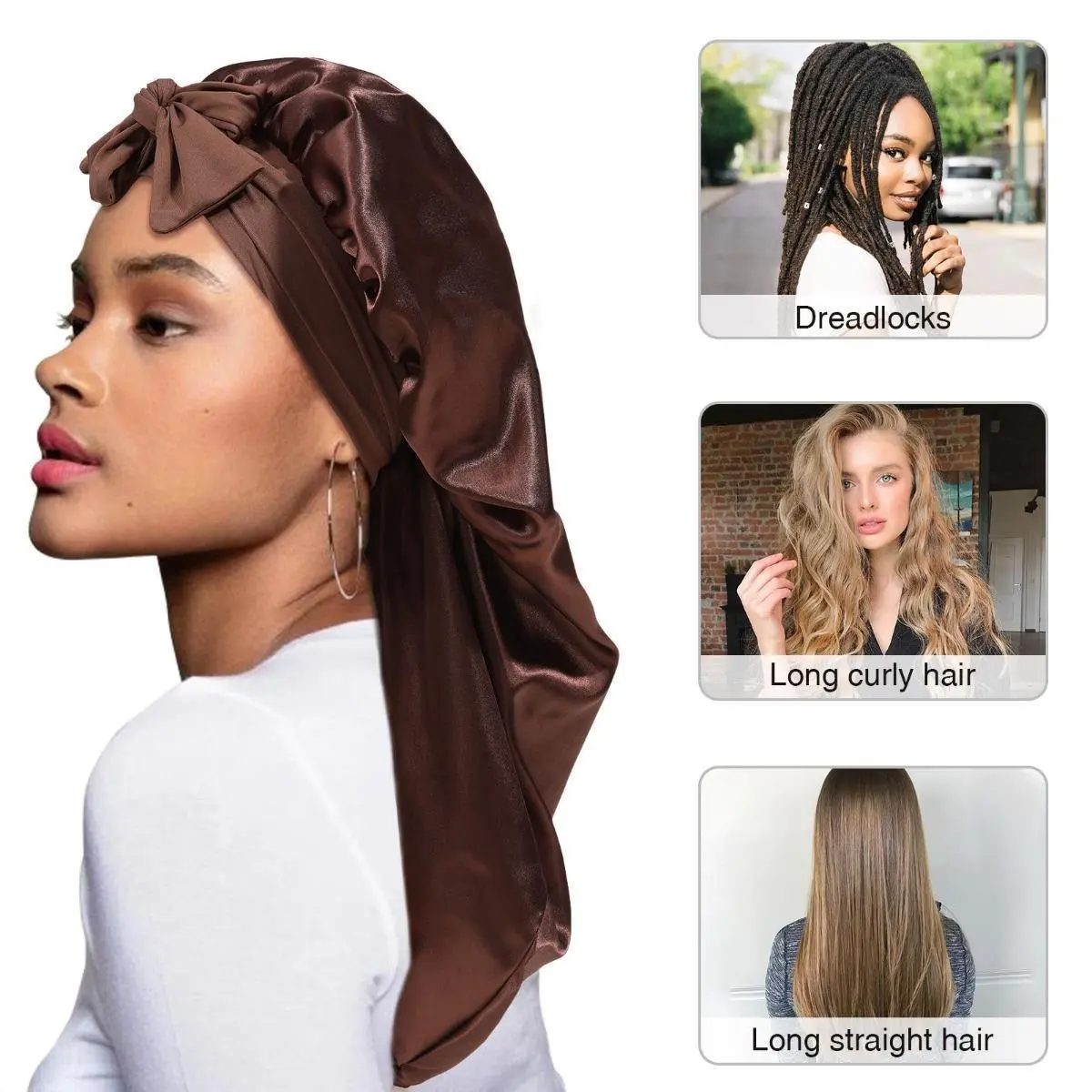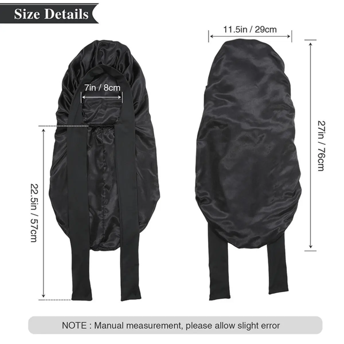 Skin-friendly satin performs more breathable and elastic,the long satin bonnet is appropriate for most head size ,the elastic wide band ensures its snug fit,will not leave mark or slip off.