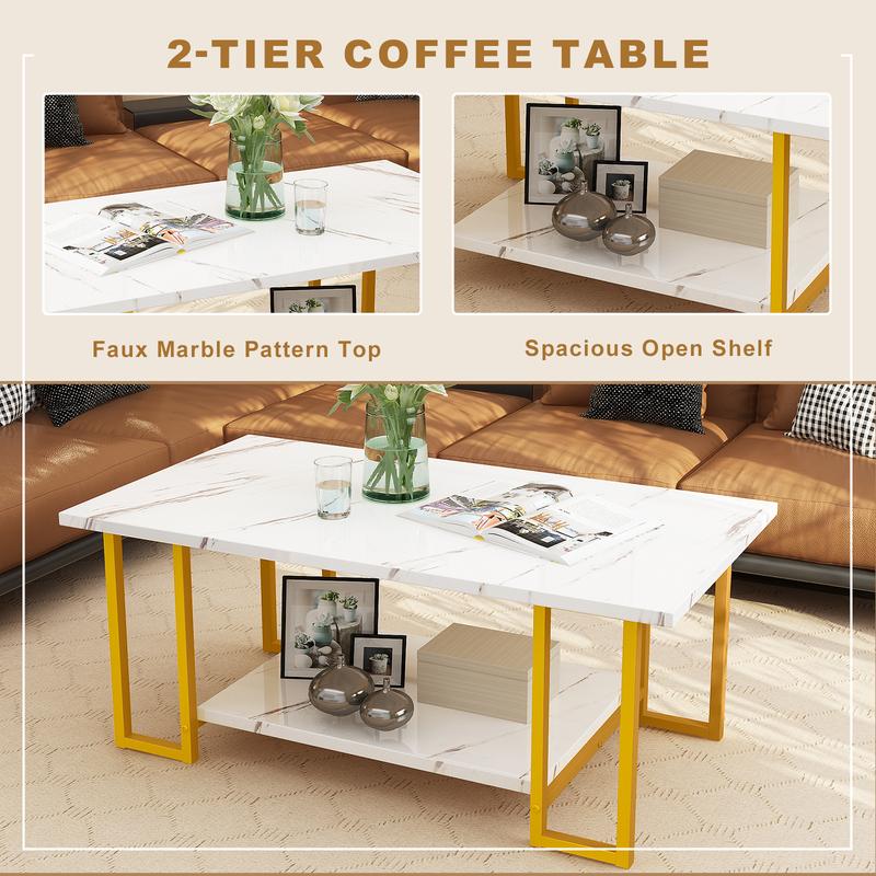 【Stylish Coffee Table】: Coffee table features a faux marble tabletop that can easily create a luxurious atmosphere. The metal frame makes the coffee table look more sophisticated, add to a modern flair to your living room.