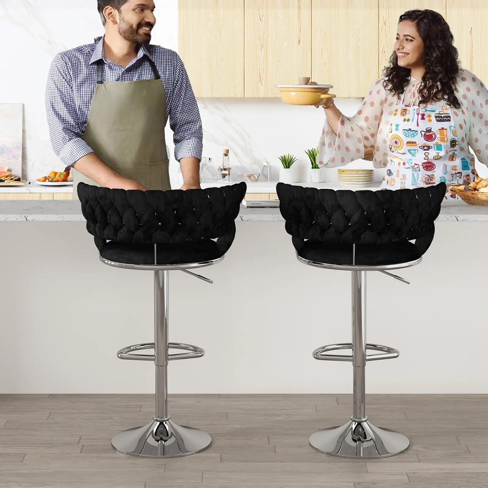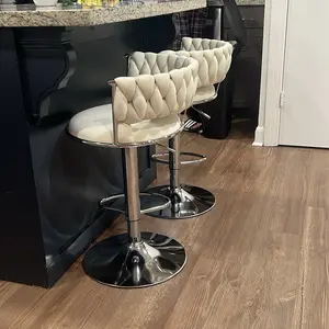 【VELVET SWIVEL BARSTOOLS SET】- Our bar stool seat is made of soft and skin-friendly velvet material and heavy-duty chrome, and filled with high-resilience sponge, thickened and widened seat cushion and backrest, so you can sit for a long time without getting tired! and the Rubber feet prevent the chair from skidding loudly or creating marks on your floor.