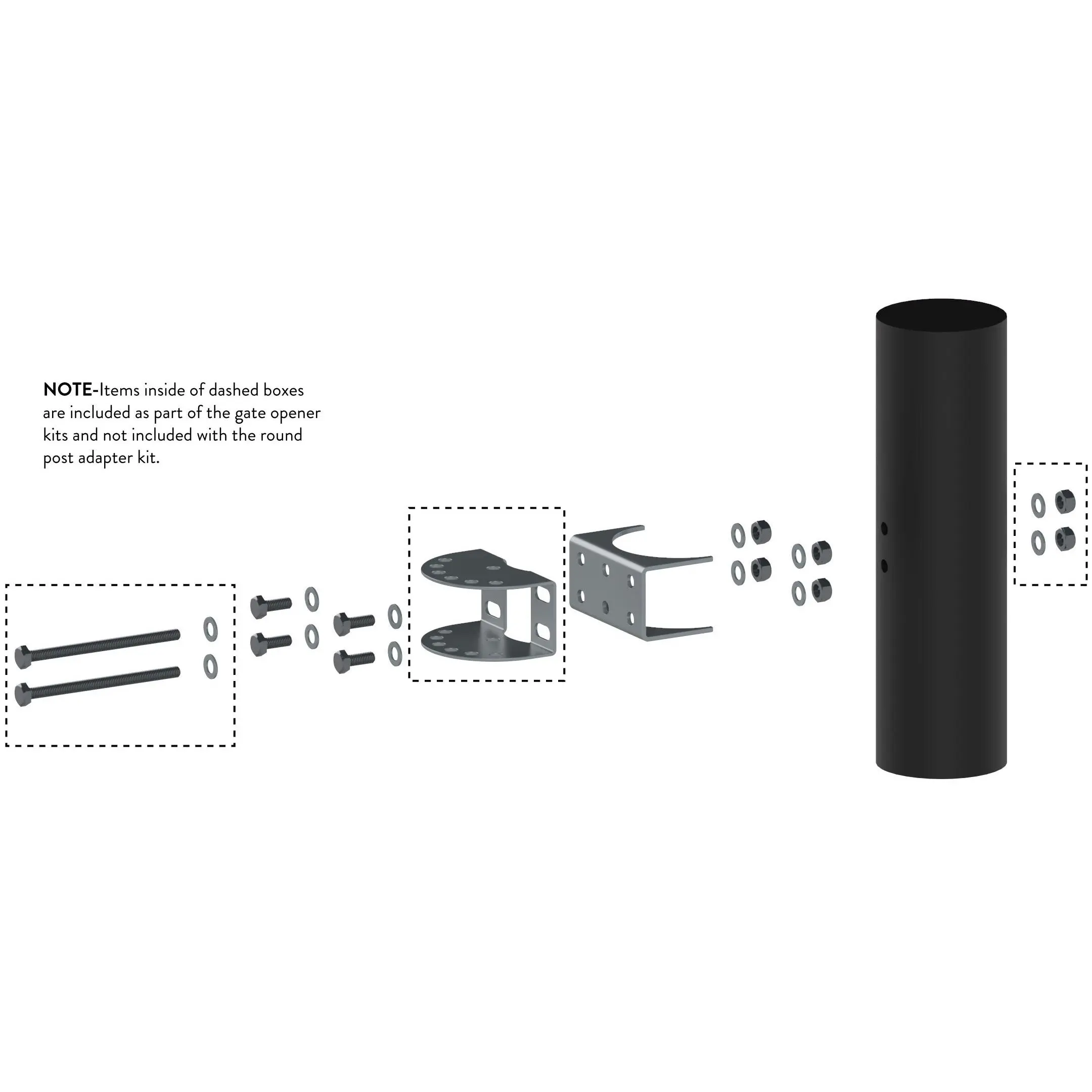 ·Allows you to mount our standard Ghost Controls rear post bracket to a 3 inch round steel post.
