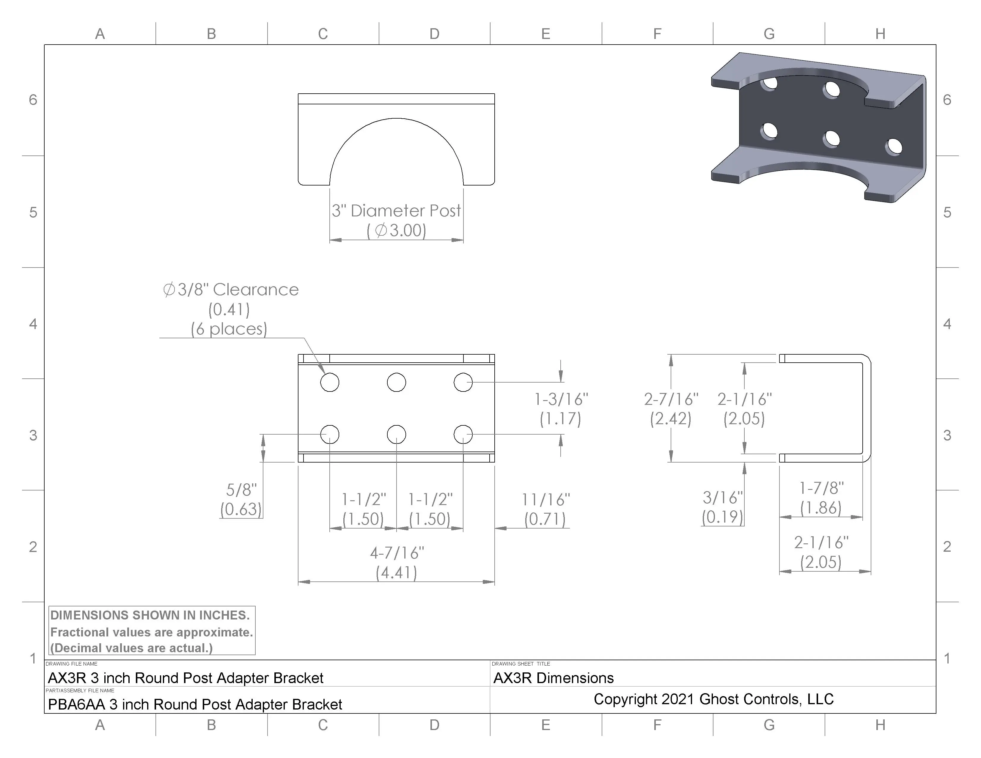 3 Inch Round Post Bracket Adapter - AX3R