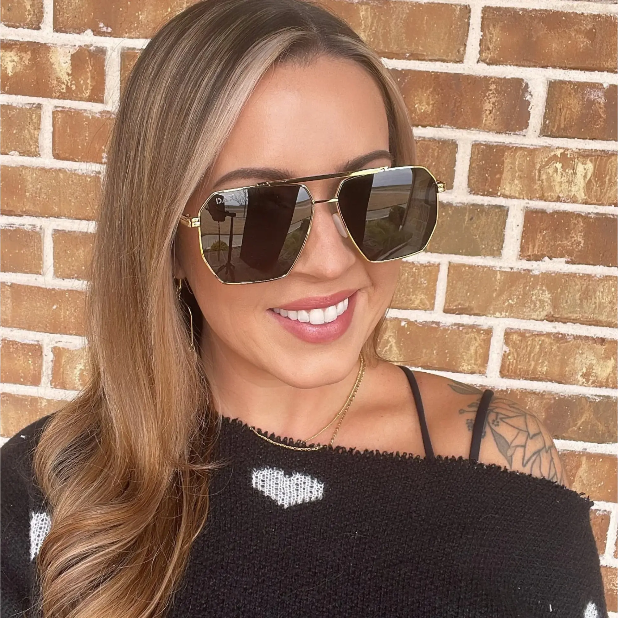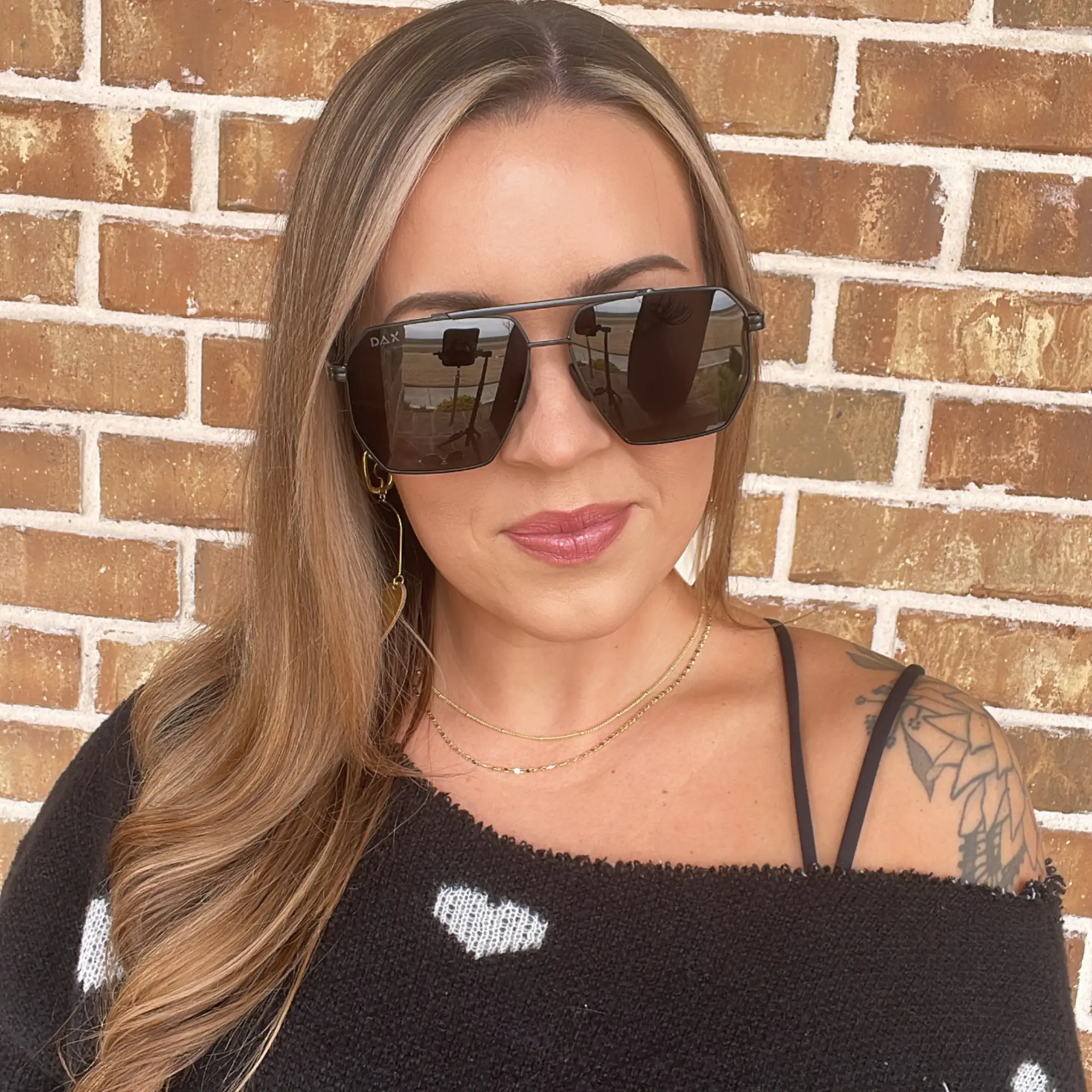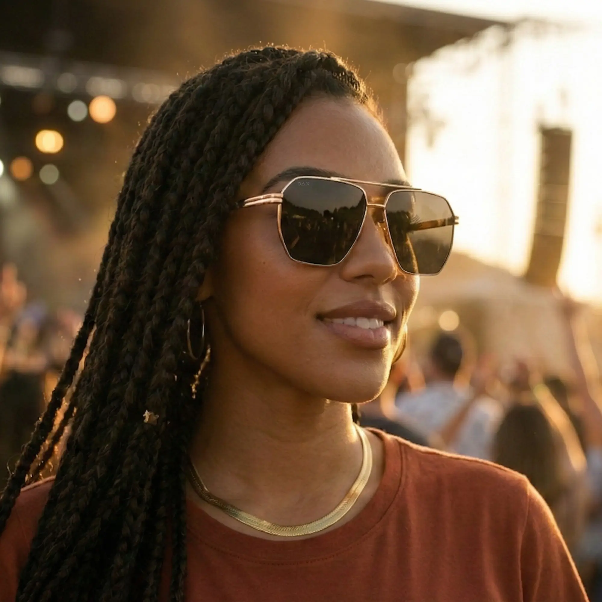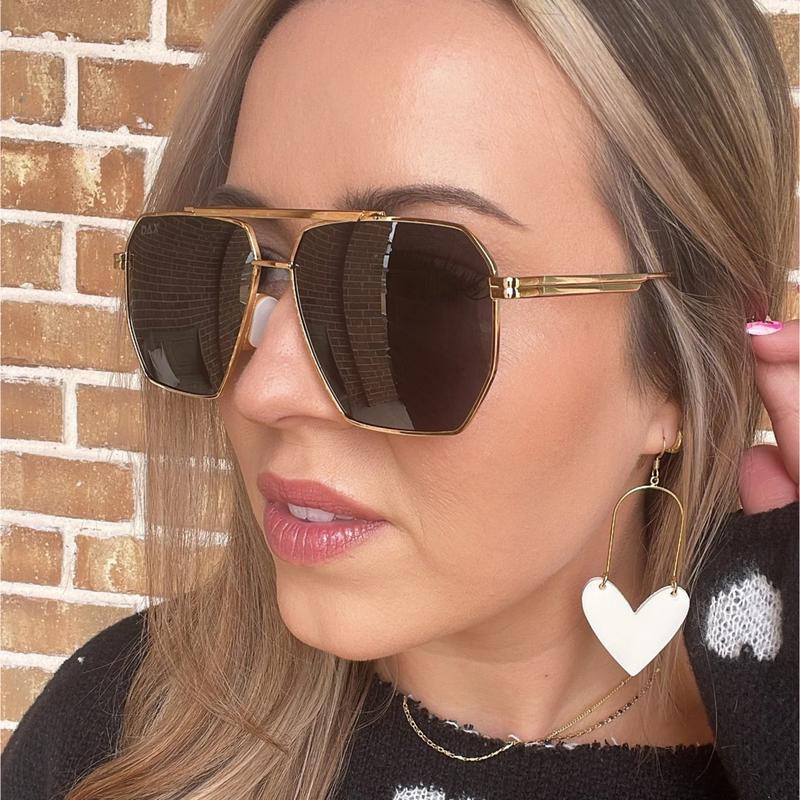 AXL Sunglasses by DAX Eyewear are large aviator sunglasses that make a bold statement. The gold accents integrated into the frames ensure you stand out, whether heading to the beach or for brunch. These sunglasses are hair-friendly and tangle-free, ensuring a smooth, snag-free experience.