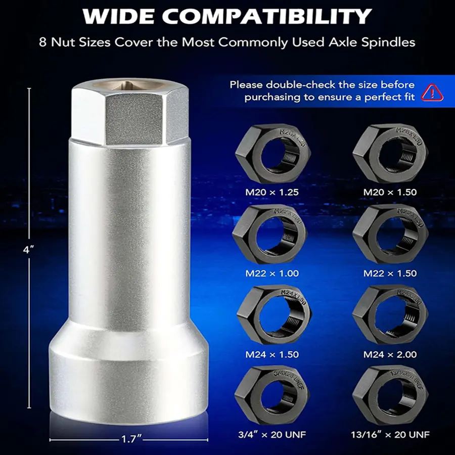 ·Commonly Needed Nuts: Covers M20x1.25, M20x1.50, M22x1.00, M22x1.50, M24x1.50, M24x2.00, 3/4"x20 UNF, and 13/16"x20 UNF. Suitable for most vehicles. 🚗