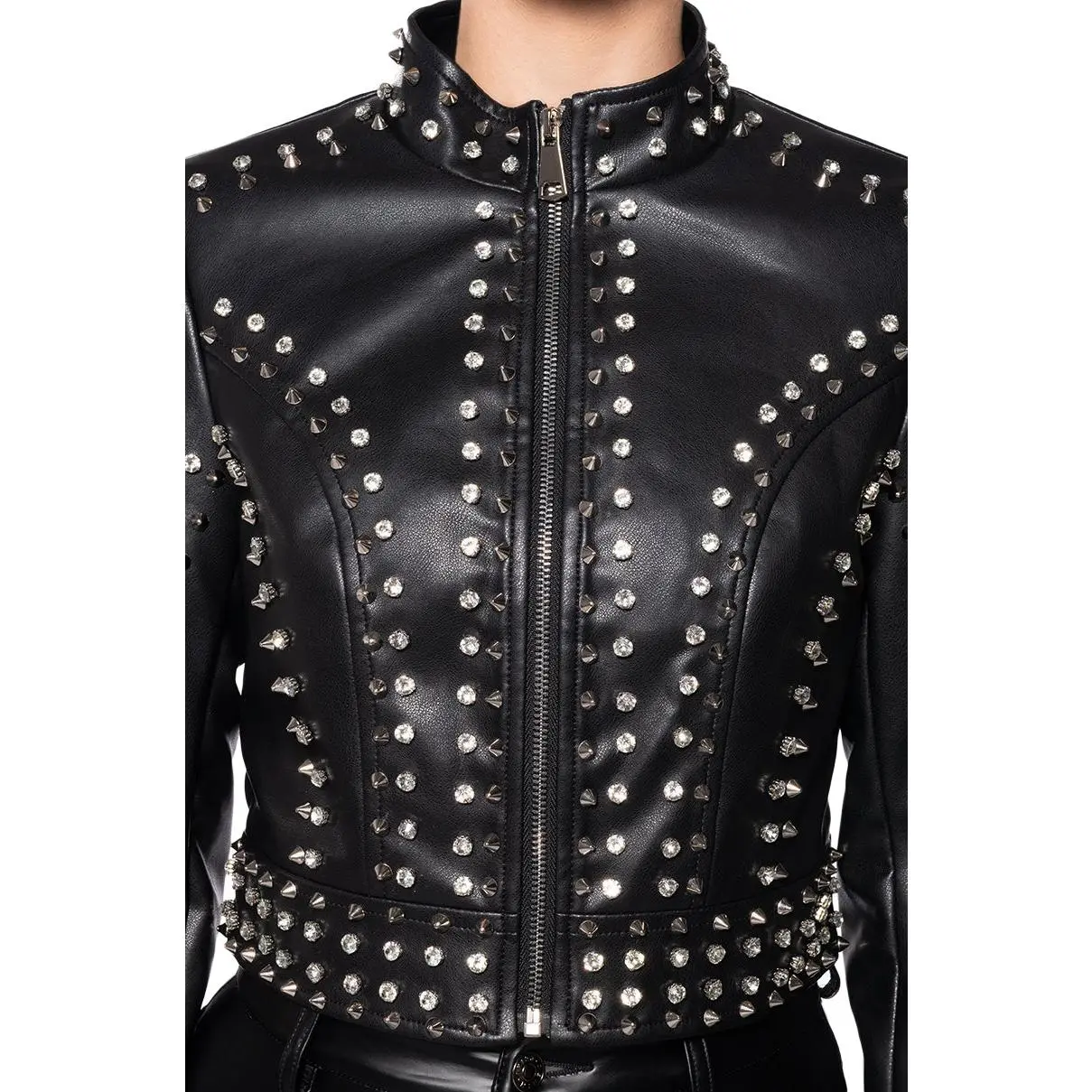 For all my leather baddies @Azalea Wang  #leatherjacket #fauxleather #rhinestones #tiktokshopholidayhaul #tiktokshopcreatorpicks