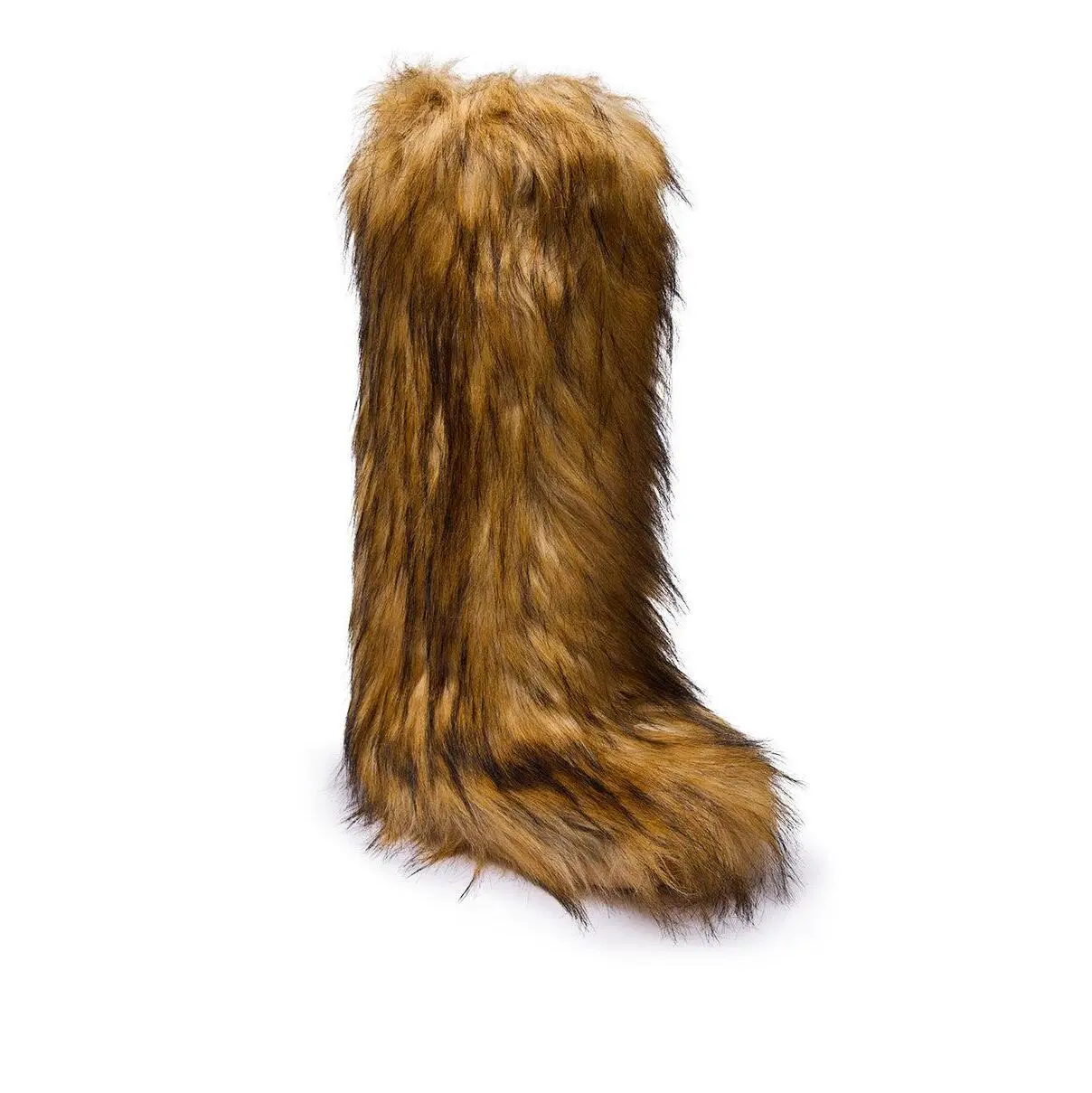 Snow days never looked this chic. The AZALEA WANG Fayes Brown Multi Furry Knee High Flat Boot is crafted from plush, shaggy faux fur and features a round toe, a flat textured sole, and a knee-high shaft with inner padding for added insulation. Complete with an effortless, pull-on fit.- Faux Fur Upper- Round Toe- Flat Sole- Knee-High Shaft- Imported(all measurements approximate from size 8)- 0.5” Sole Height- 17” Shaft Height- 21” Shaft Opening Circumference- 19.5” Calf CircumferenceProduct ID: 1056522