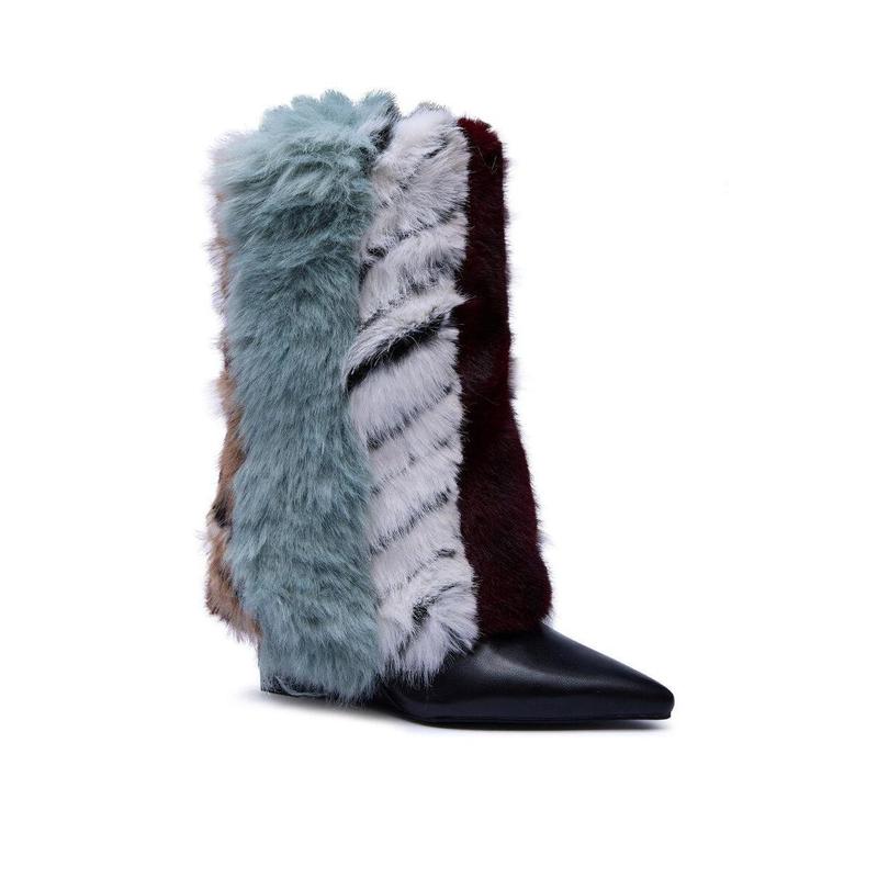 AZALEA WANG BRIASH BLUE MULTI FUR HIDDEN WEDGE BOOTIE