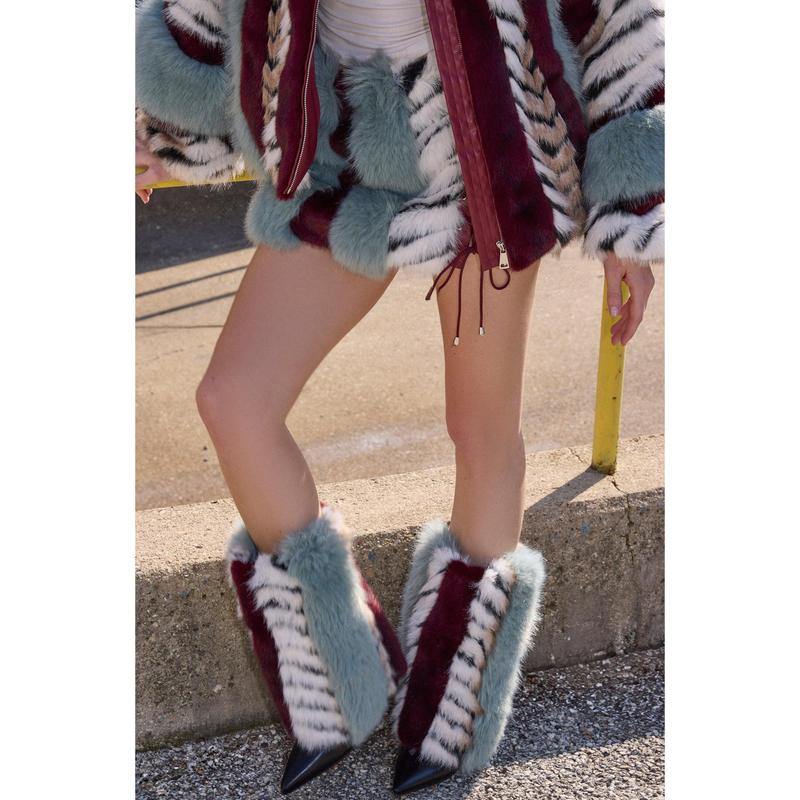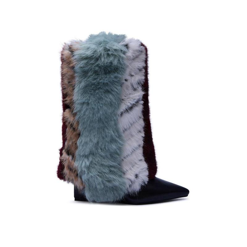 Make every step unforgettable in The AZALEA WANG Briash Blue Multi Fur Hidden Wedge Bootie. Designed with a pointed toe and sleek concealed wedge heel, these boots combine statement-making style with effortless lift. The bold mix of plush faux fur in teal, burgundy, black, and white stripe accents creates a luxurious texture that instantly elevates any outfit. Pair them with denim, leather, or the matching fur pieces for a head-turning, fashion-forward look that blends streetwear edge with high-fashion drama.- Faux Leather & Faux Fur Upper- Pointed Toe- Wedge Heel- Mid-Calf Shaft- No Stretch- Imported(all measurements approximate from size 7.5)- 3.75” Heel Height- 10” Shaft Height- 16” Shaft Opening CircumferenceProduct ID: 1055646