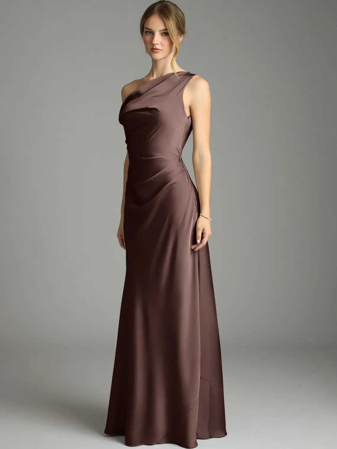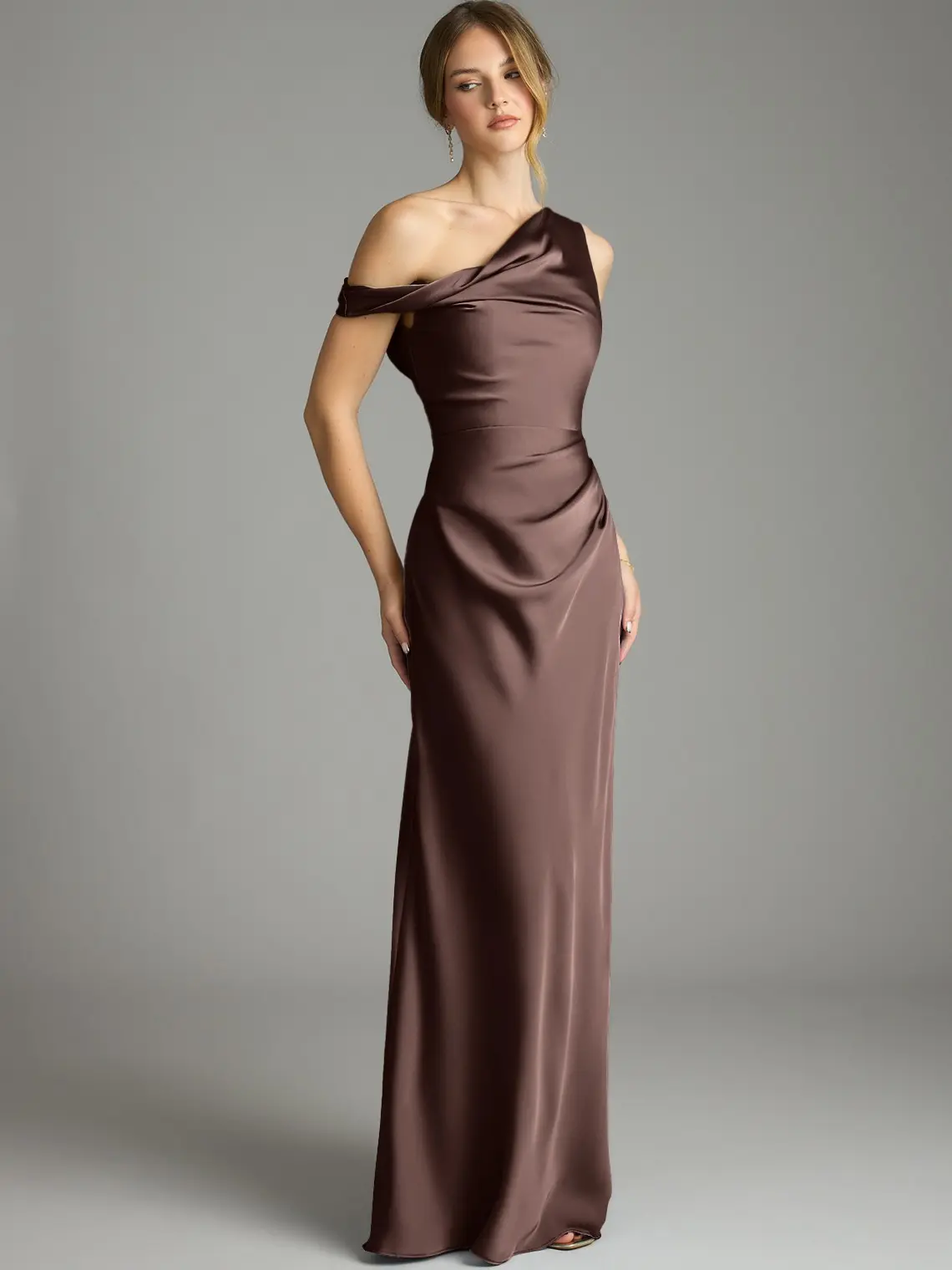 ✨ Elegant Design ✨ The Emerson Bridesmaid Dress offers modern sophistication with a stretch satin mermaid silhouette. It features an asymmetrical one-shoulder neckline, creating a striking, elegant look. The softly pleated bodice and slinky skirt ensure a flattering fit and graceful movement. Perfect for wedding guests or evening events.