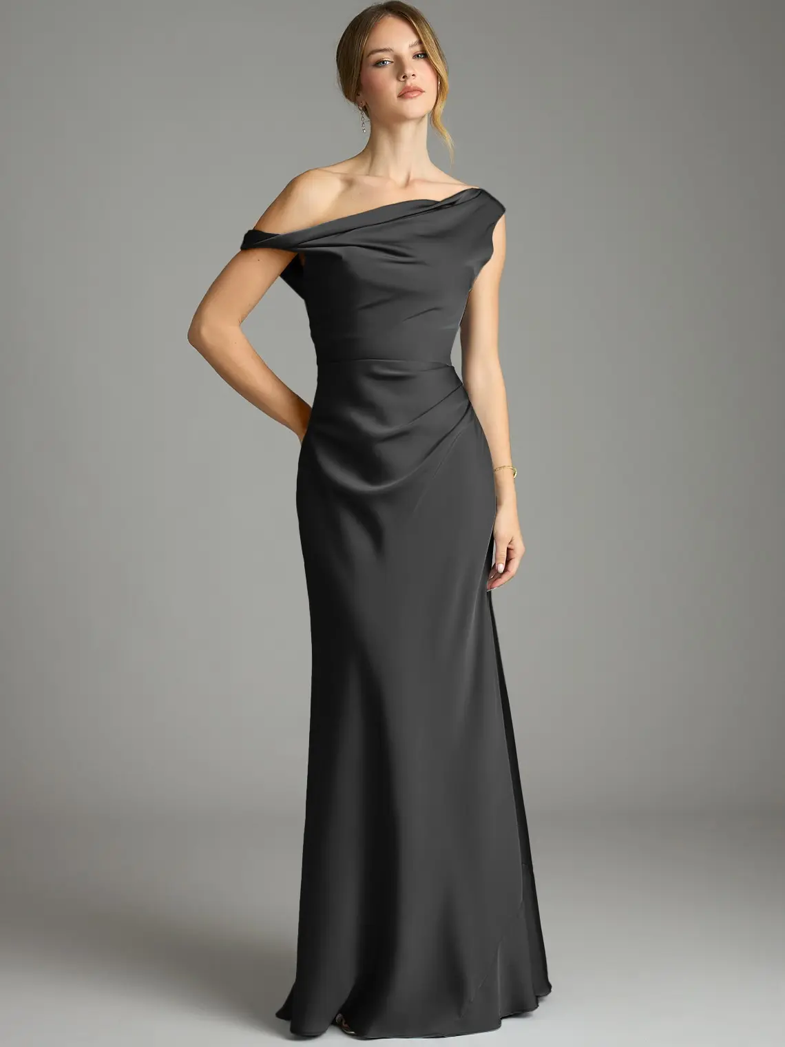 Sleek. Sculpted. Effortless. 🖤✨ This off-the-shoulder moment is giving timeless elegance with a modern edge. The drape? Flawless. The fit? Snatched. The vibe? Main character energy. Perfect for weddings, galas, or when you just feel like being unforgettable. 🥂 @Azazie US #eventdress #elegantstyle #bridesmaidsdresses #fashiontiktok