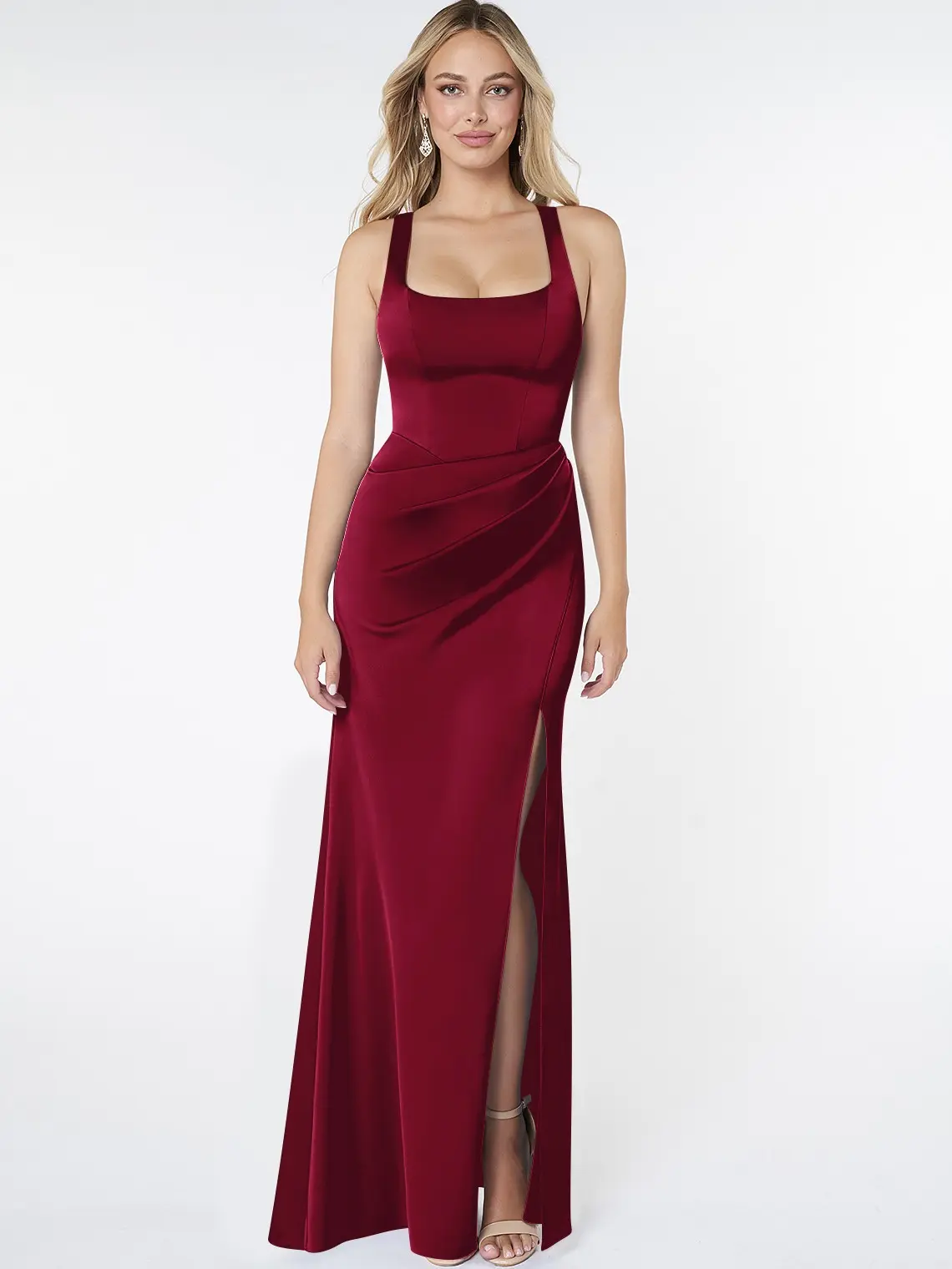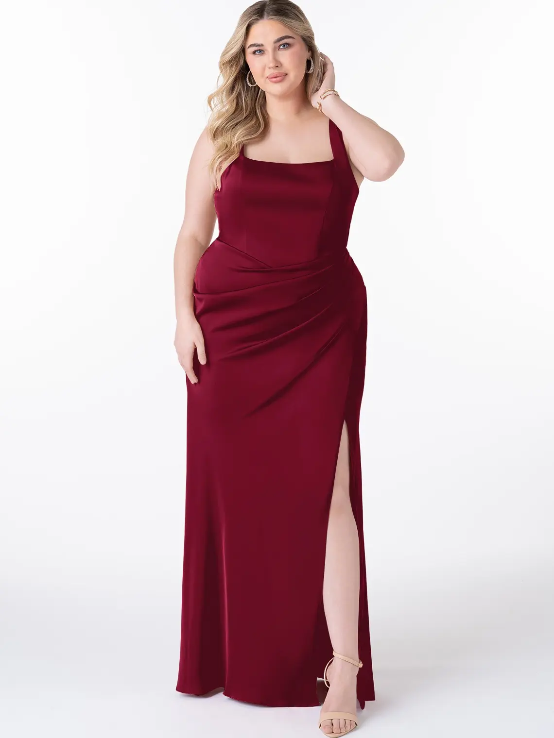 The Mero Bridesmaid Dress is a stunning blend of elegance, structure, and modern femininity. Crafted from premium stretch satin, this gown offers a smooth, luminous finish with a subtle stretch that moves comfortably with the body while maintaining a beautifully sculpted silhouette.