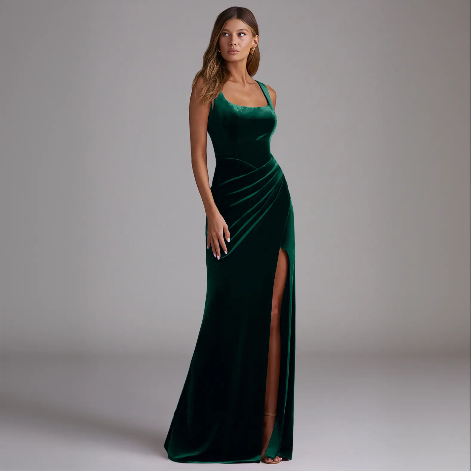 Azazie Mero Square Neck Keyhole Back Slit Mermaid Bridesmaid Wedding Evening Velvet Dress
