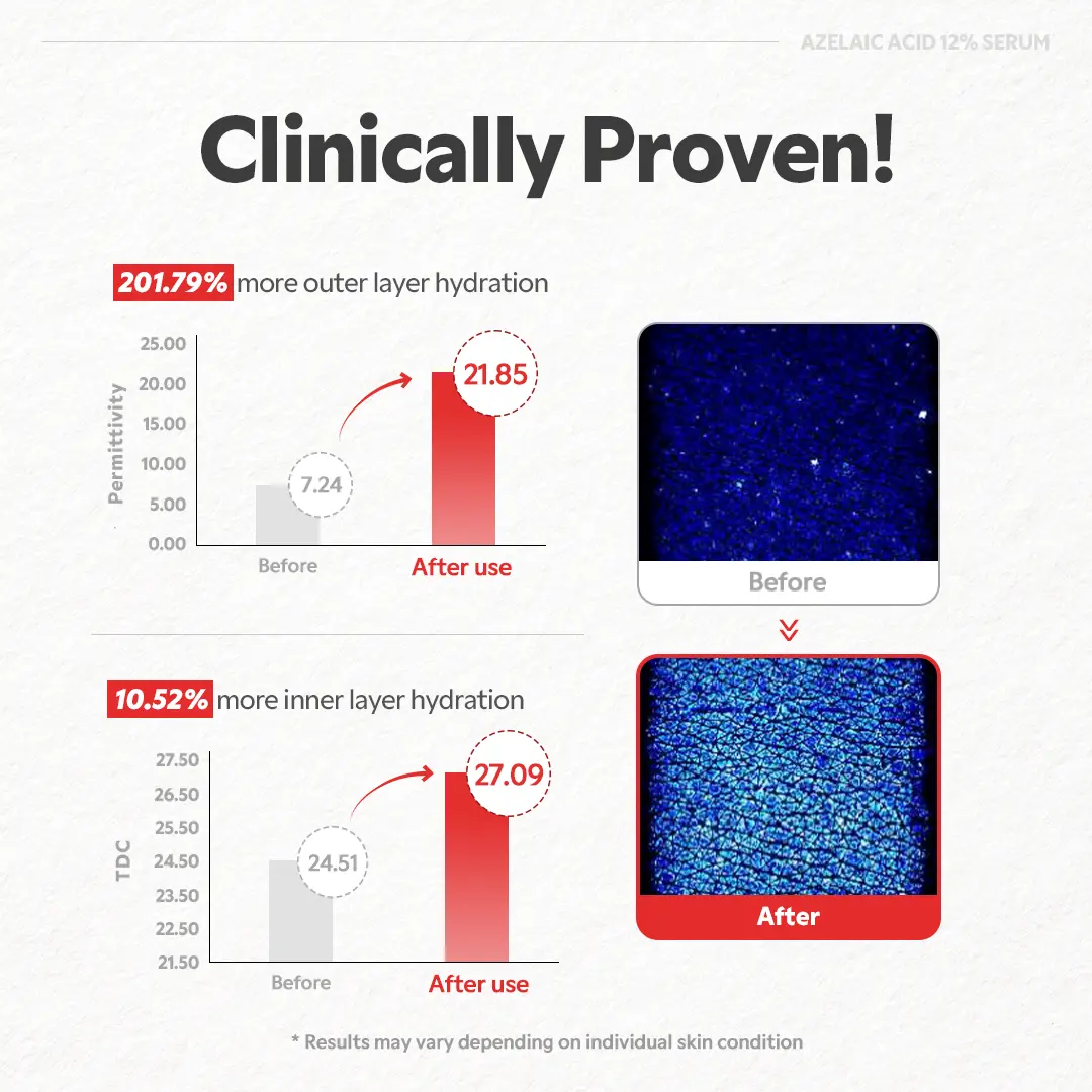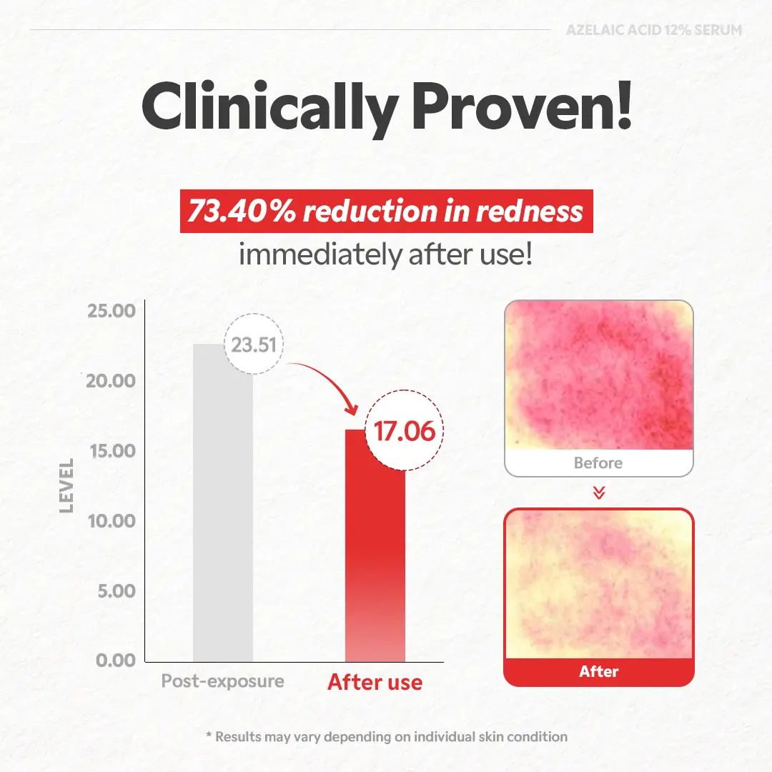 ·Powerful Yet Gentle Blemish Care12% Azelaic Acid works to unclog pores, smooth texture, and fade post-acne marks—without harsh irritation.