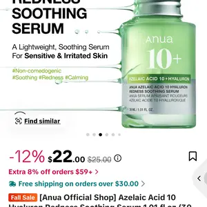 The Anua Azelaic Acid 10 Hyaluron Redness Soothing Serum is lightweight, gentle, and effective. It absorbs quickly, reduces redness, and helps fade post-acne marks without drying my skin. My complexion looks smoother and more even. A calming, hydrating serum I highly recommend.
