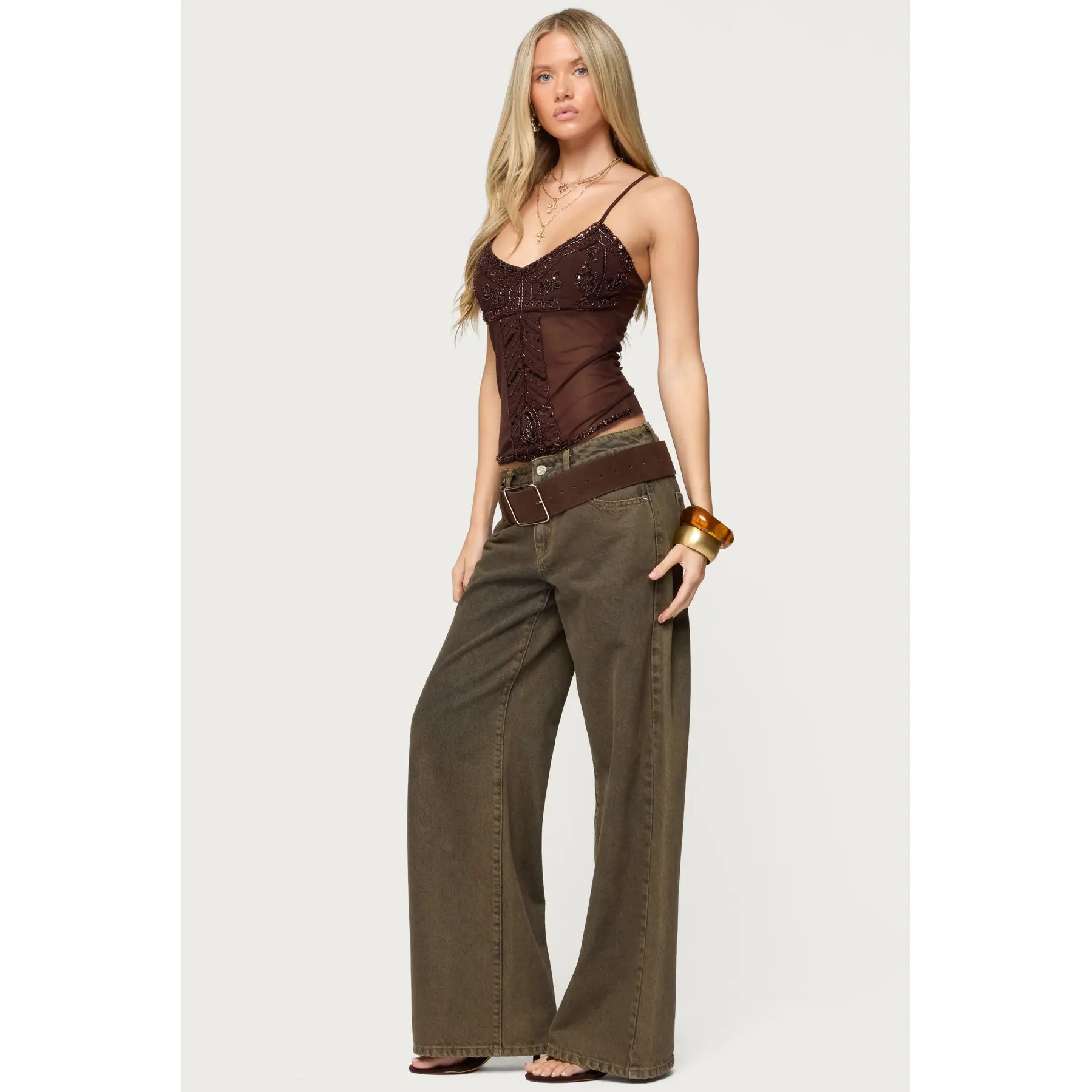 Obsessed with this outfit 🤎✨ @Edikted #ediktedtop #outfitinspo #sequintop #sheertop #beadedtop