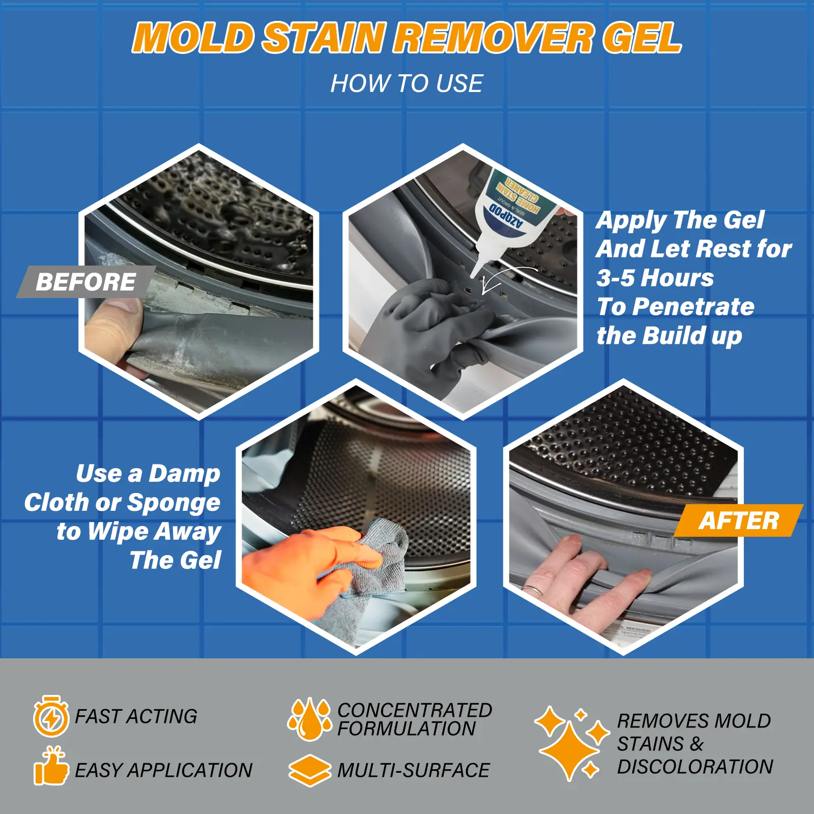 I can not even believe how well this worked!! Absolutely amzing product! Took the mold right off my shower grout! Check the before and after photos!