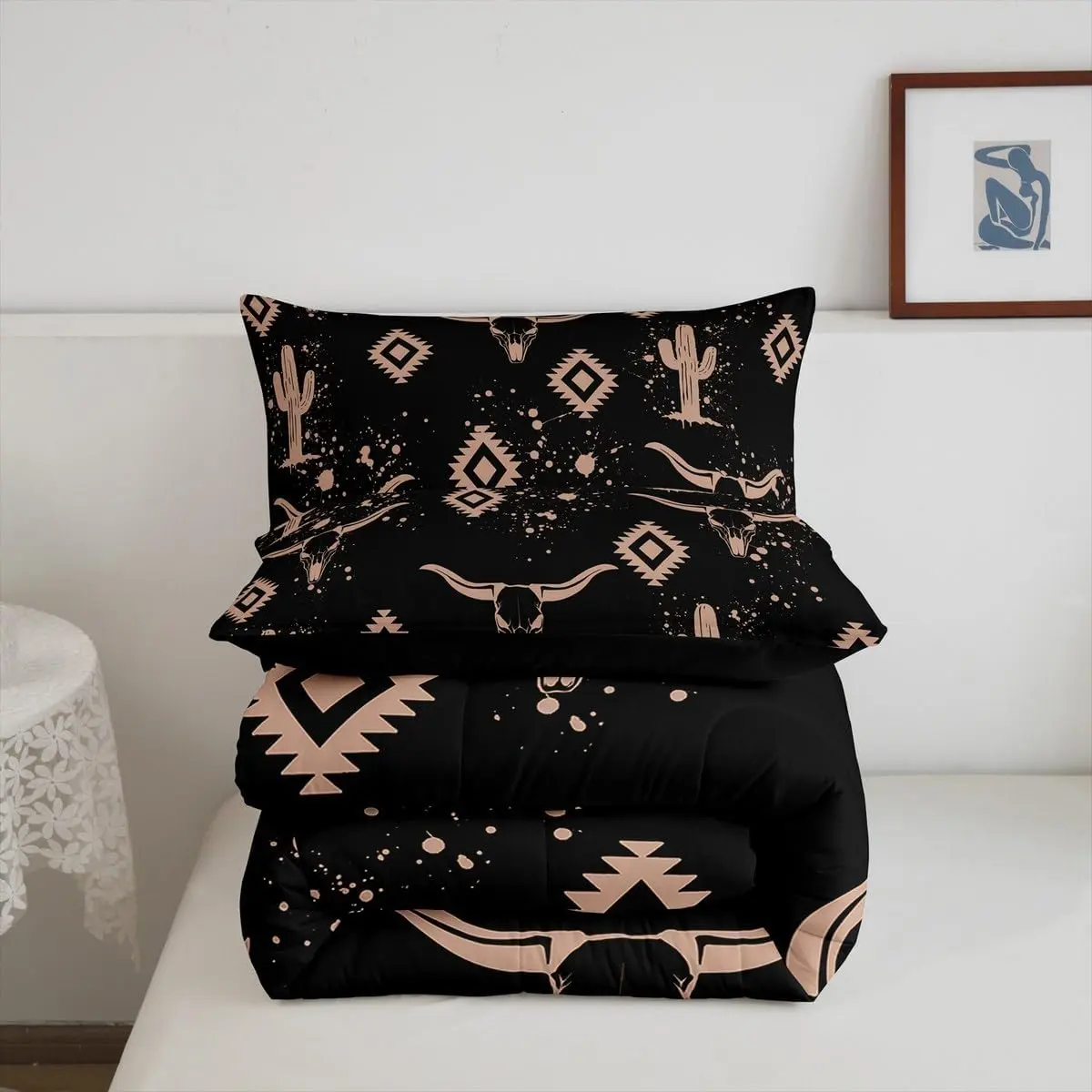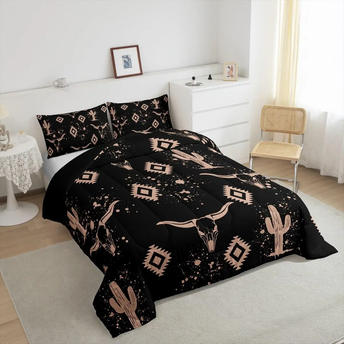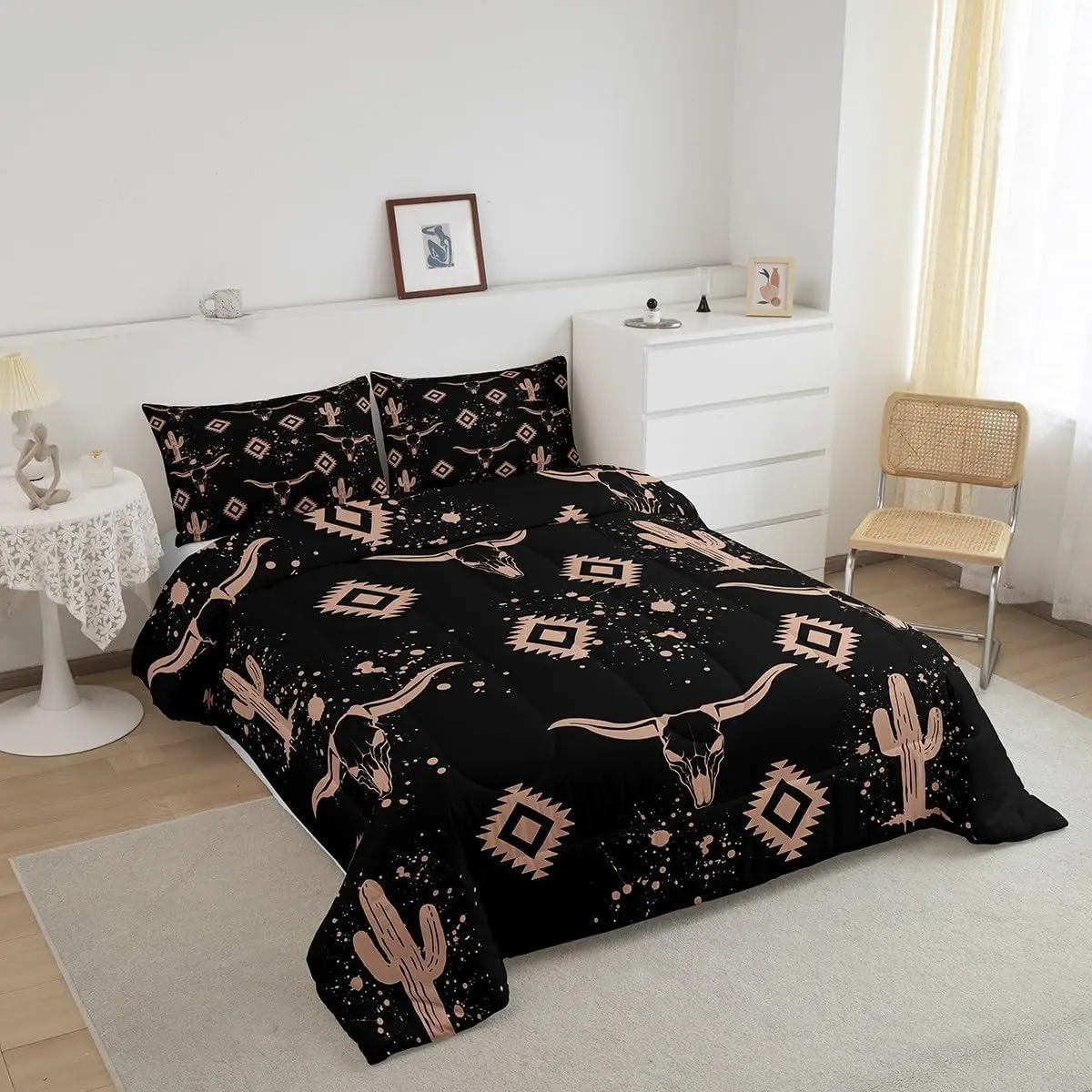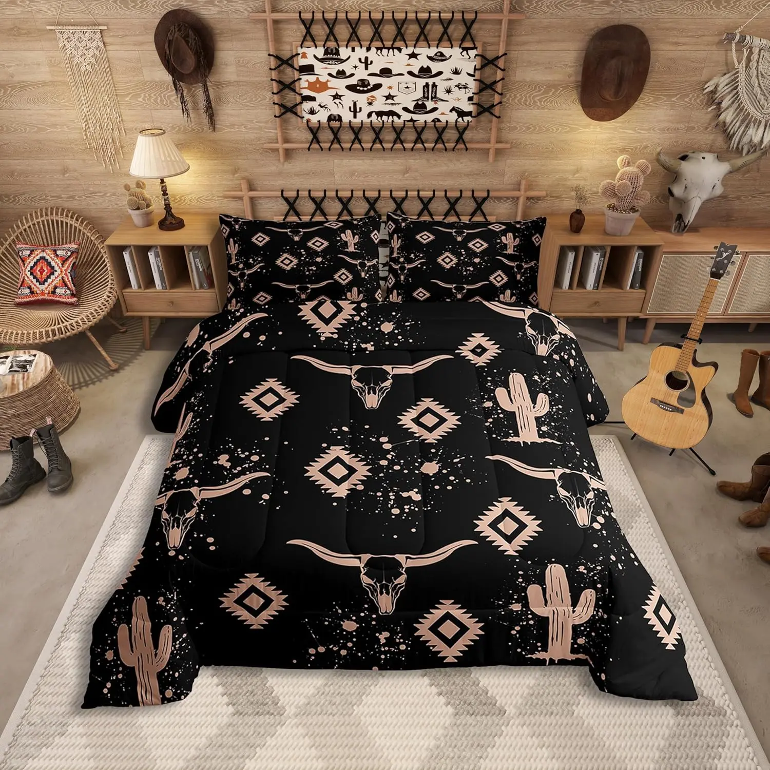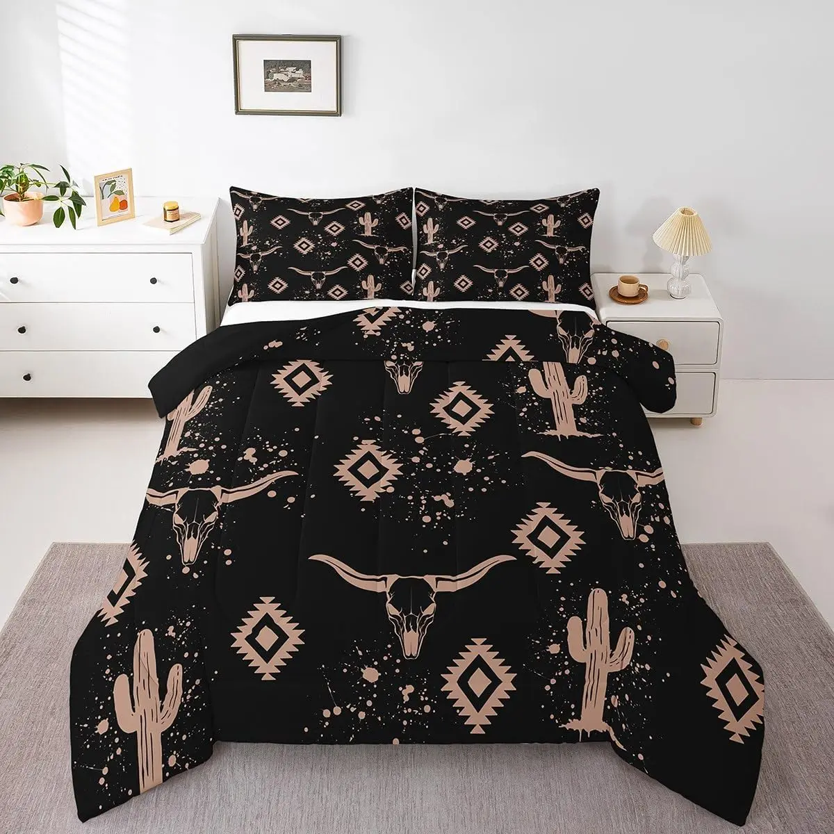 5. Aztec Comforter Set for Kids Boys Girls,Rustic Bull Skull Bedding Set,Southwestern Cowboy Quilt Set,Vintage Geometric Duvet Set