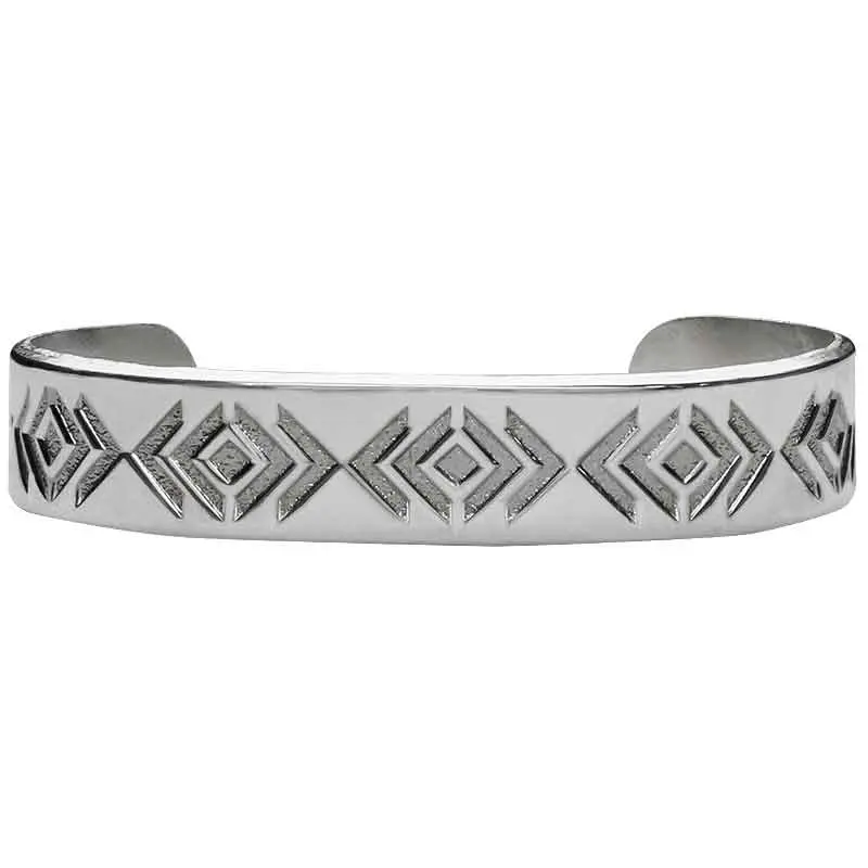 This stunning cuff features an aztec design on a German Silver hand-engraved base and finished with an antique finish for that true Western feel.