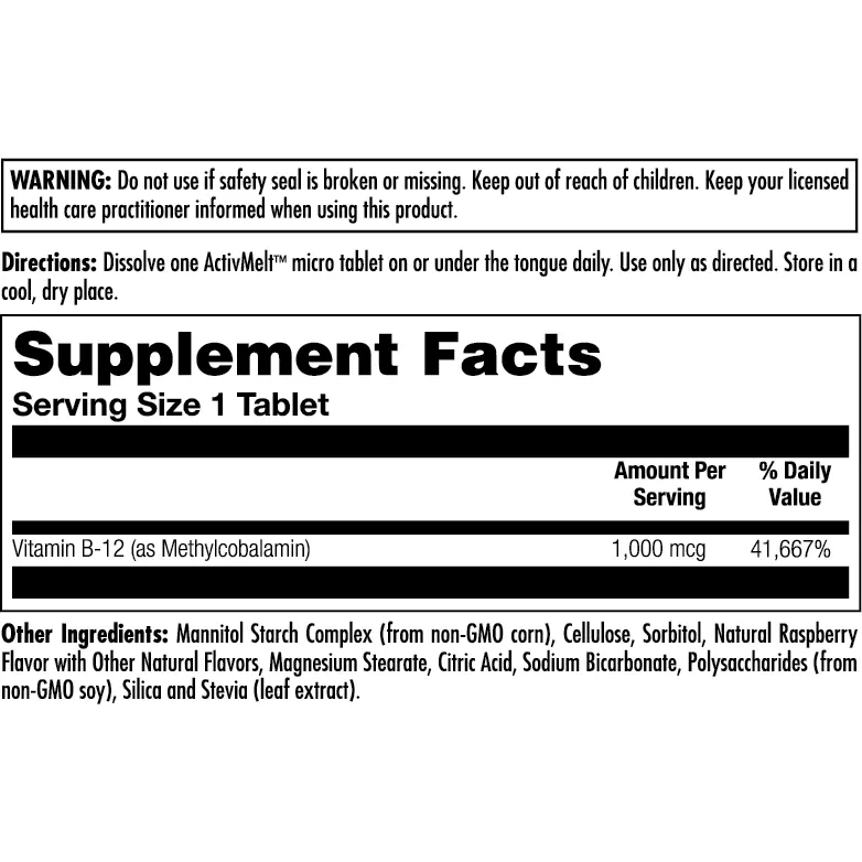 Bursting with delicious natural red raspberry flavor, our powerful B-12 Activmelt® tablets support healthy, active energy and much more.
