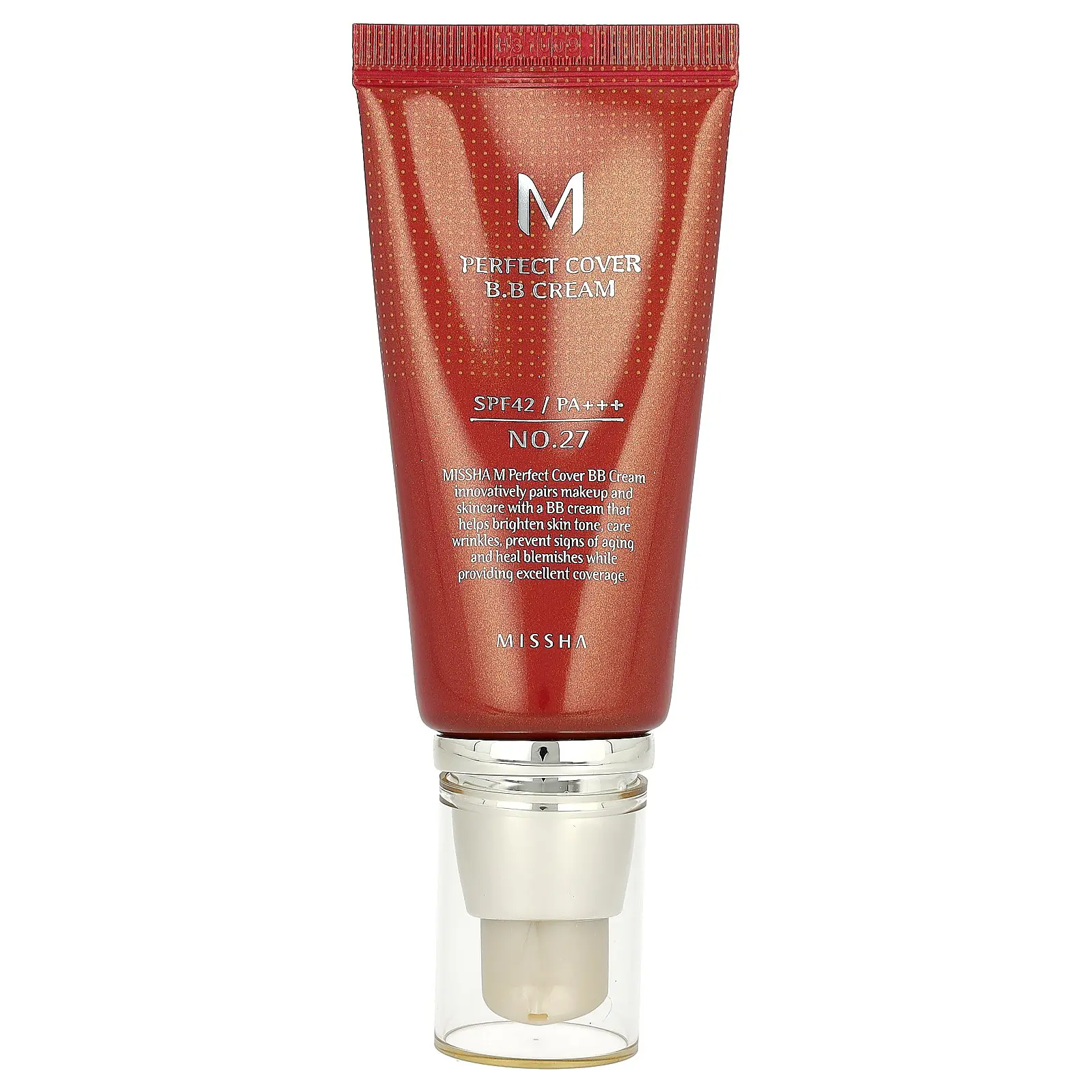 5. Missha M Perfect Cover B.B Cream, SPF 42 PA+++, No. 27 Honey Beige, 1.7 fl oz (50 ml)