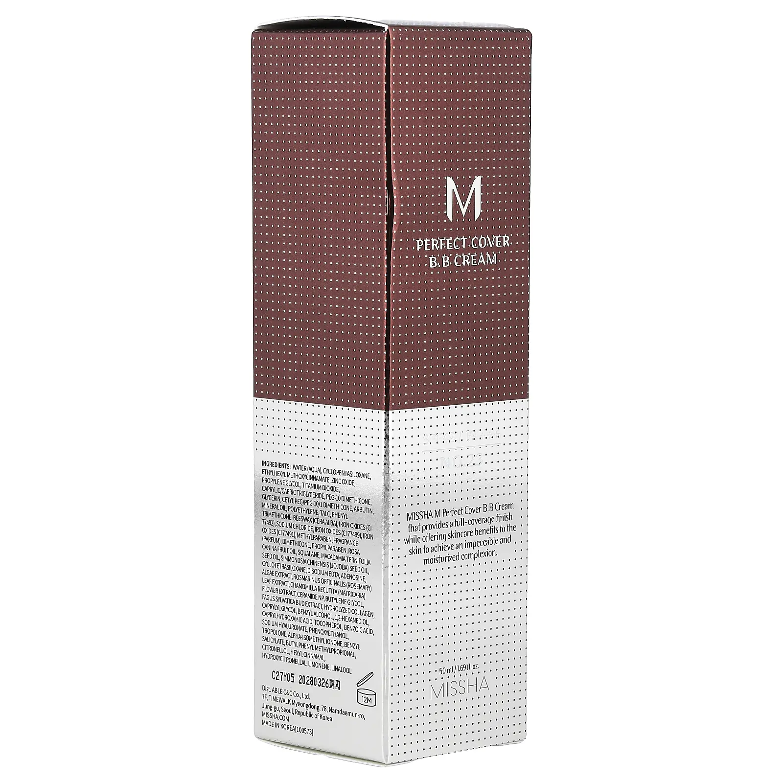 Missha M Perfect Cover B.B Cream, SPF 42 PA+++, No. 23 Natural Beige, 1.69 fl oz (50 ml)