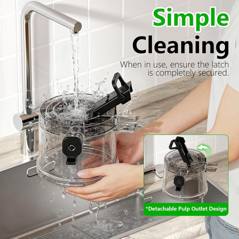 ·99.6% High Yield & Easy Clean - This cold press juicer extracts more juice with optimal pulp separation for richer flavor. The detachable pulp container locks securely, making cleanup faster than other juicer machines.